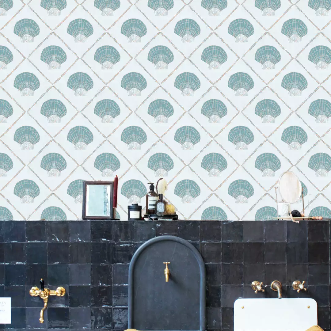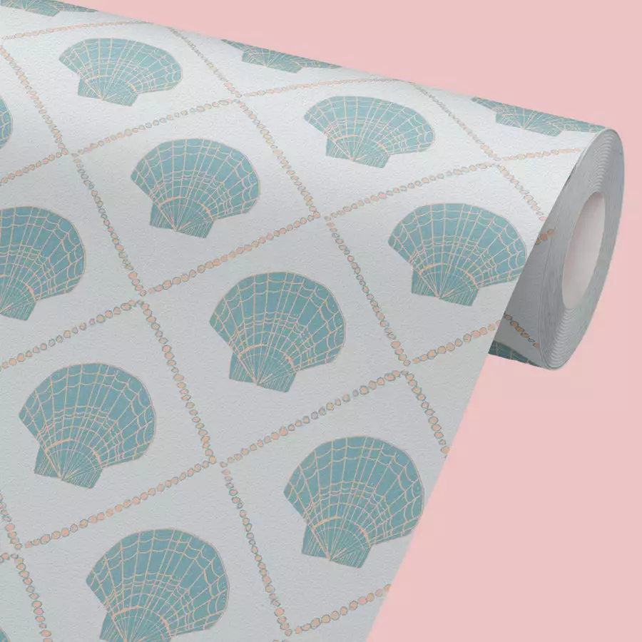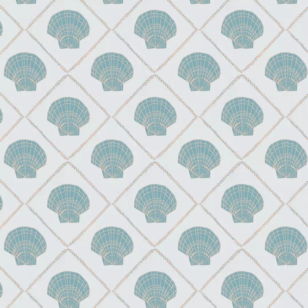 This simple repeated shell pattern brings the fresh sea breeze into your home. Reminiscent of summers amongst the waves, this paper is a perfect pattern to invite into a bathroom or sunny room in your home.Â
