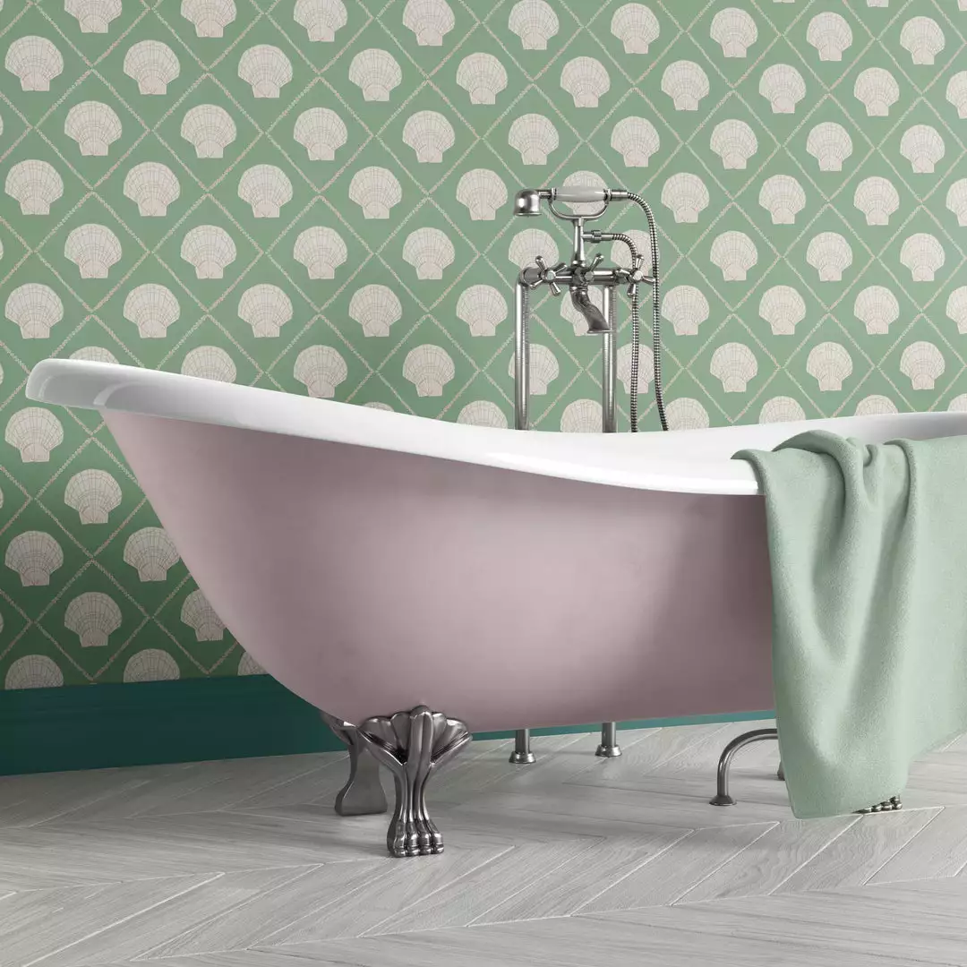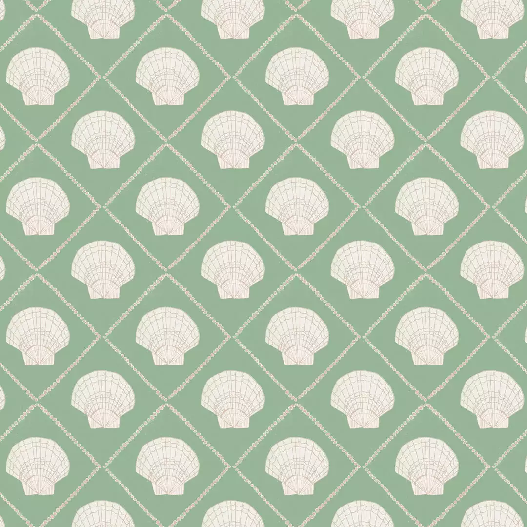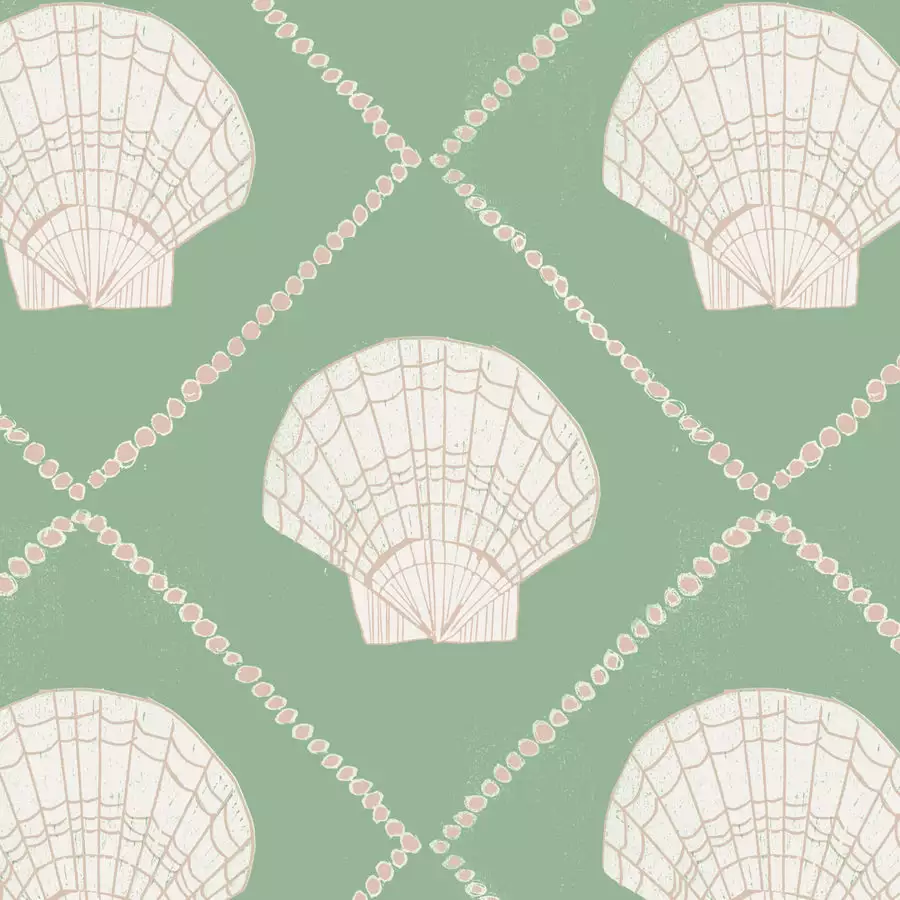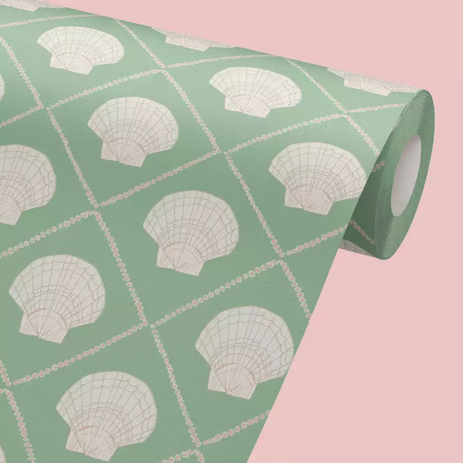 This simple repeated shell pattern brings the fresh sea breeze into your home. Reminiscent of summers amongst the waves, this paper is a perfect pattern to invite into a bathroom or sunny room in your home. Â