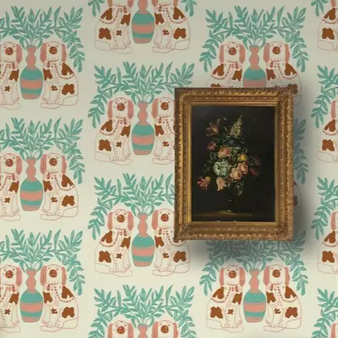 Wallpaper is a fantastic way to inject a sense of fun into your home. I have always loved the Staffordshire dog figurines, since first noticing the sweet pair sitting atop my Nan’s fireplace when I was a child.Â