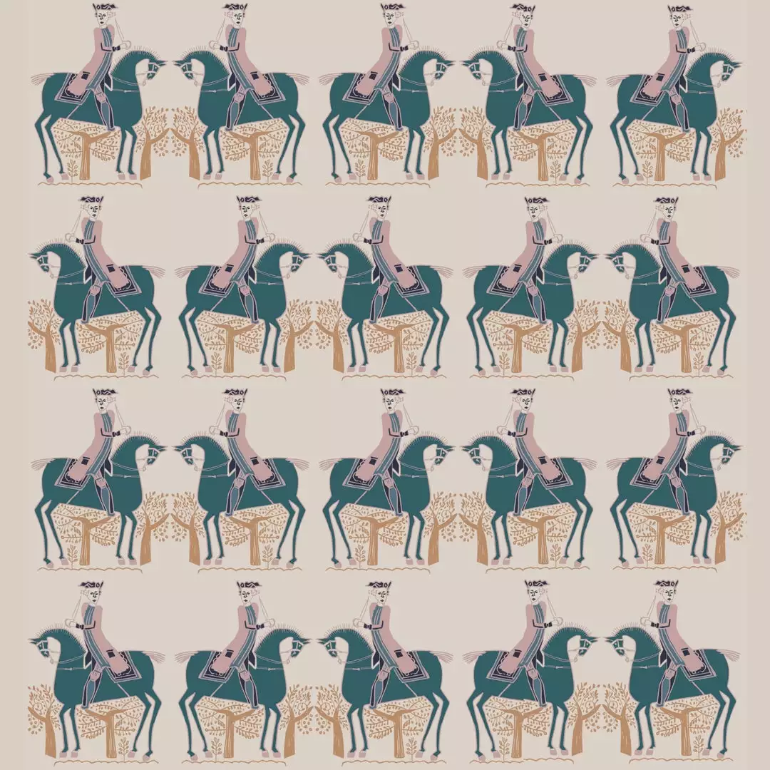 Red Coat was inspired by a drawing from 1770 of a redcoat soldier and has been reworked here to embody all the young adventurers who dream of exploring the world, and preferably on horseback. This wallpaper will encourage stories, tall tales, imagination, and adventure.