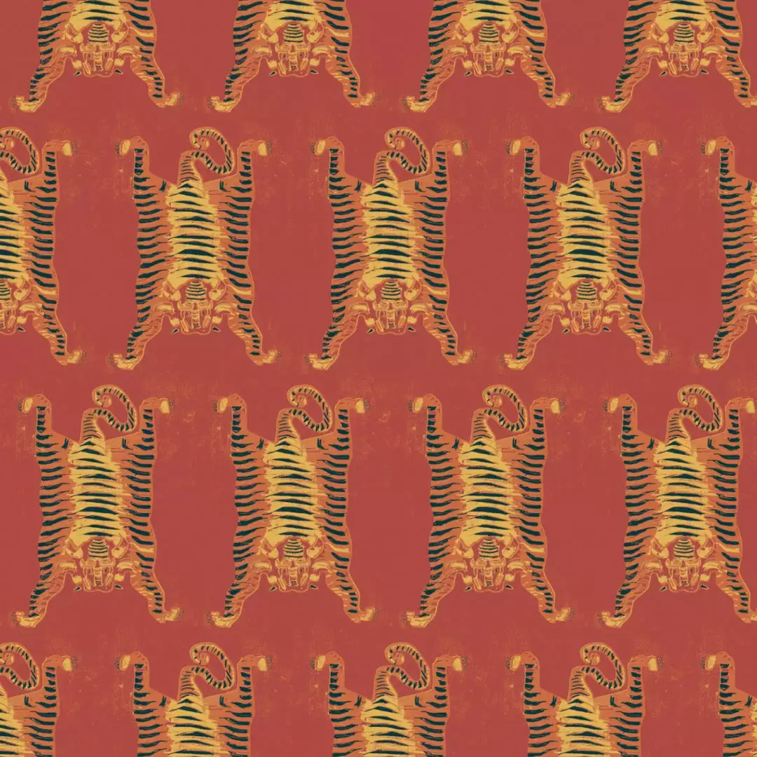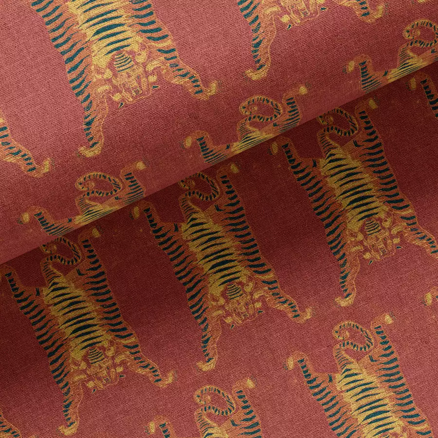 Tigers are endlessly fascinating, with their lithe elegance, fierceness and strength. Invite the tiger’s power into your home with this Tibetan – inspired print. This pattern brings a playful element to any room while honouring the traditions and strength associated with the tiger in Tibet. Be bold, be daring and embrace the power of the tiger in your home.