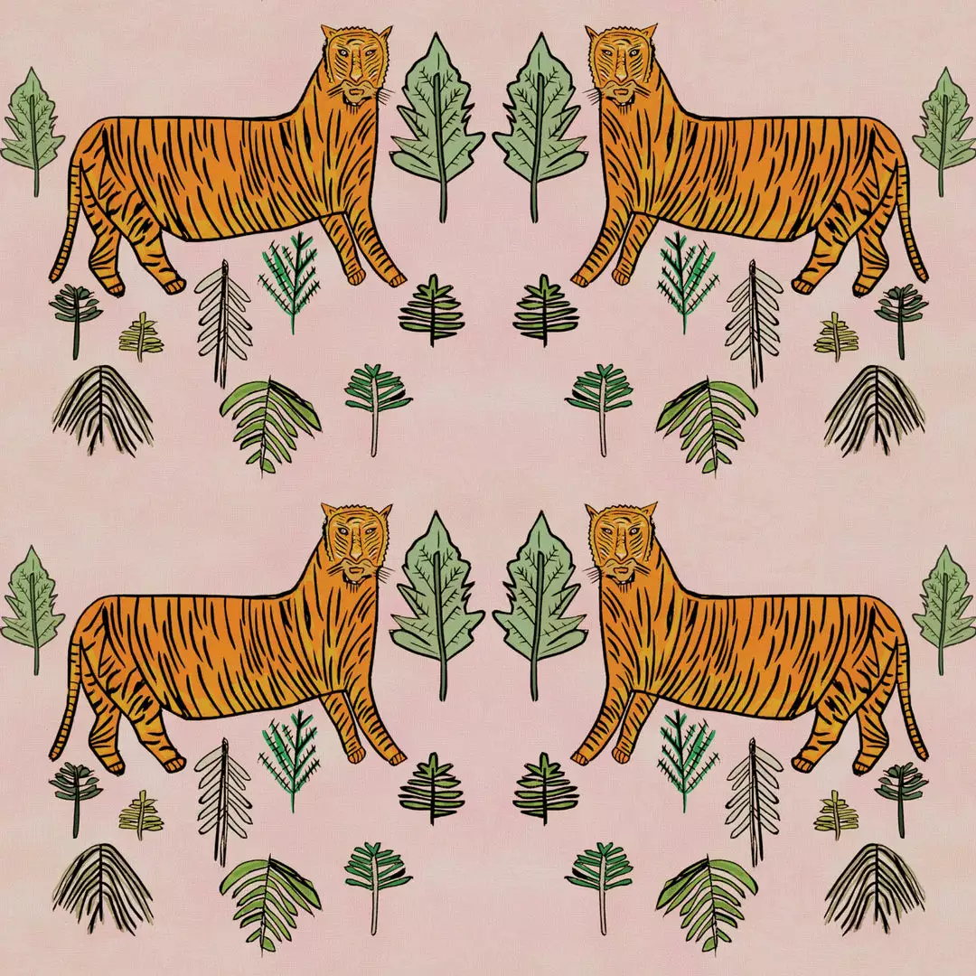 Tiger Tiger is inspired by the William Blake poem Tyger Tyger and was the first wallpaper I designed, for my daughter’s bedroom. It is the wonderment Blake has for the world and the miracle of nature that I wanted my daughter to share. The illustration of the tiger is innocent, however, the meaning is complex and will provoke debate as she grows. This wallpaper is perfect for creating a room with a sense of curiosity and wonder.