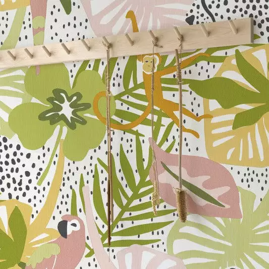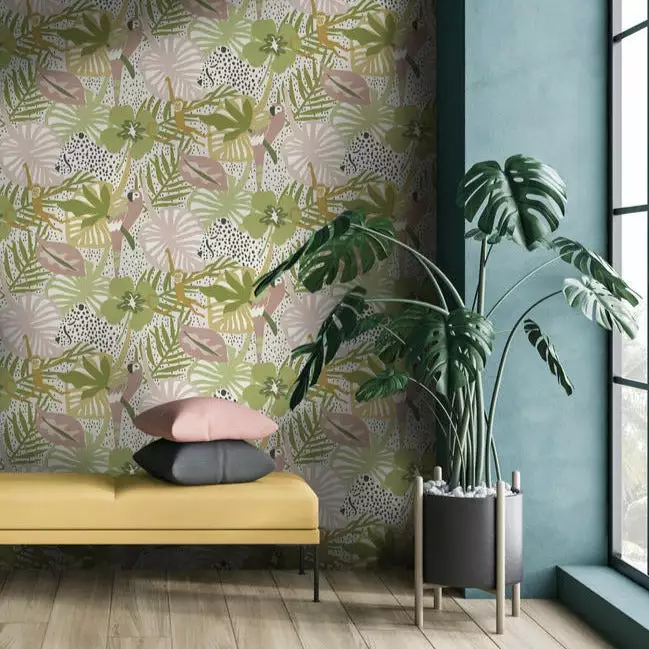 This tropical wallpaper is full of life with flowers, birds, palms and a few hidden surprises. Don’t worry – they don’t bite, they’d rather delight. Available in four colourwaysÂ