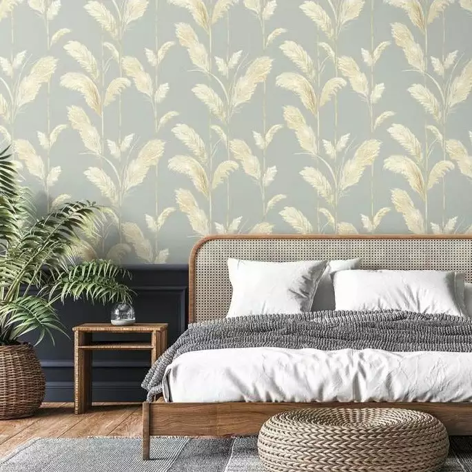 Brand Mckenzie Bohemian Dream Pampas Grass Wallpaper, Cornflower Blue