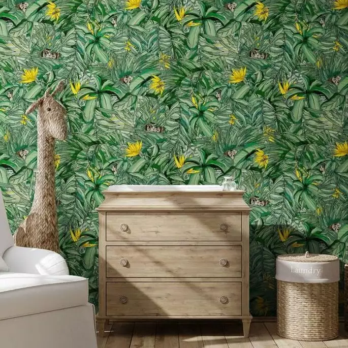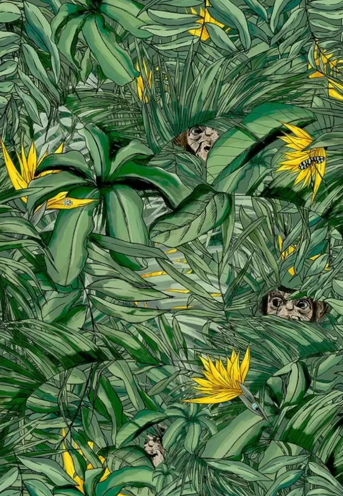 Peering through the jungle foliage, the family of Monkeys are subtly camouflaged amongst the leaves, flowers and insects watching the world from their natural habitat. Layers of foliage draw you into this living wall, a world of splendor and surprises.