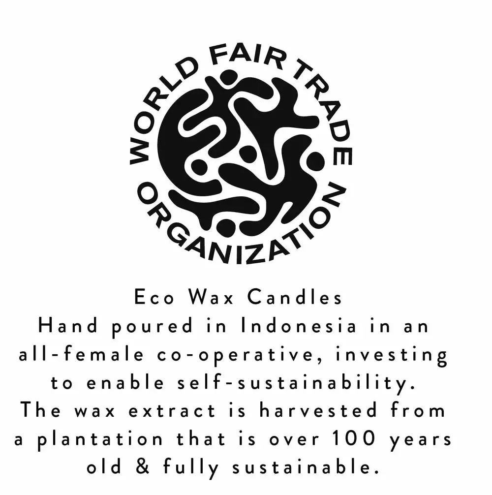Boxed in a BCS Kraft Card (easily recycled) box 8 hour burn time, with a tall clean flame. Non-drip. Pure cotton wick (lead/metal free) Ecological colour dyes, paraffin free. Hand poured in Indonesia Fair Trade Made