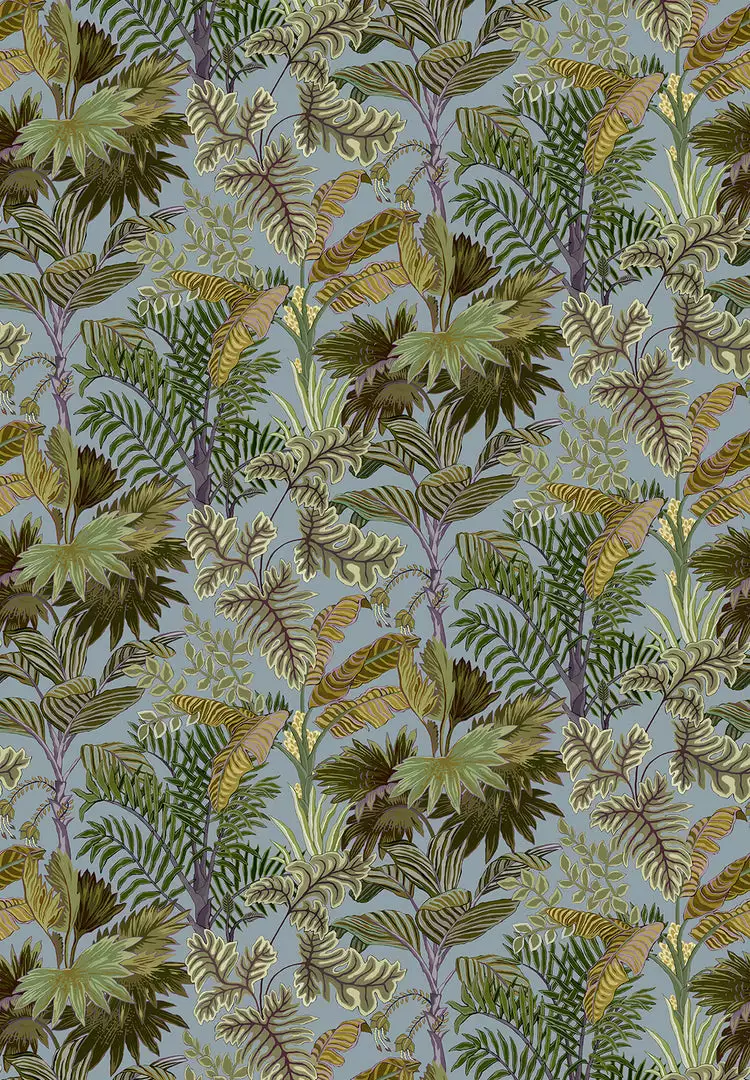 A luscious density of palm trees creating a playful and naive design. This design was hand painted with watercolour paints.