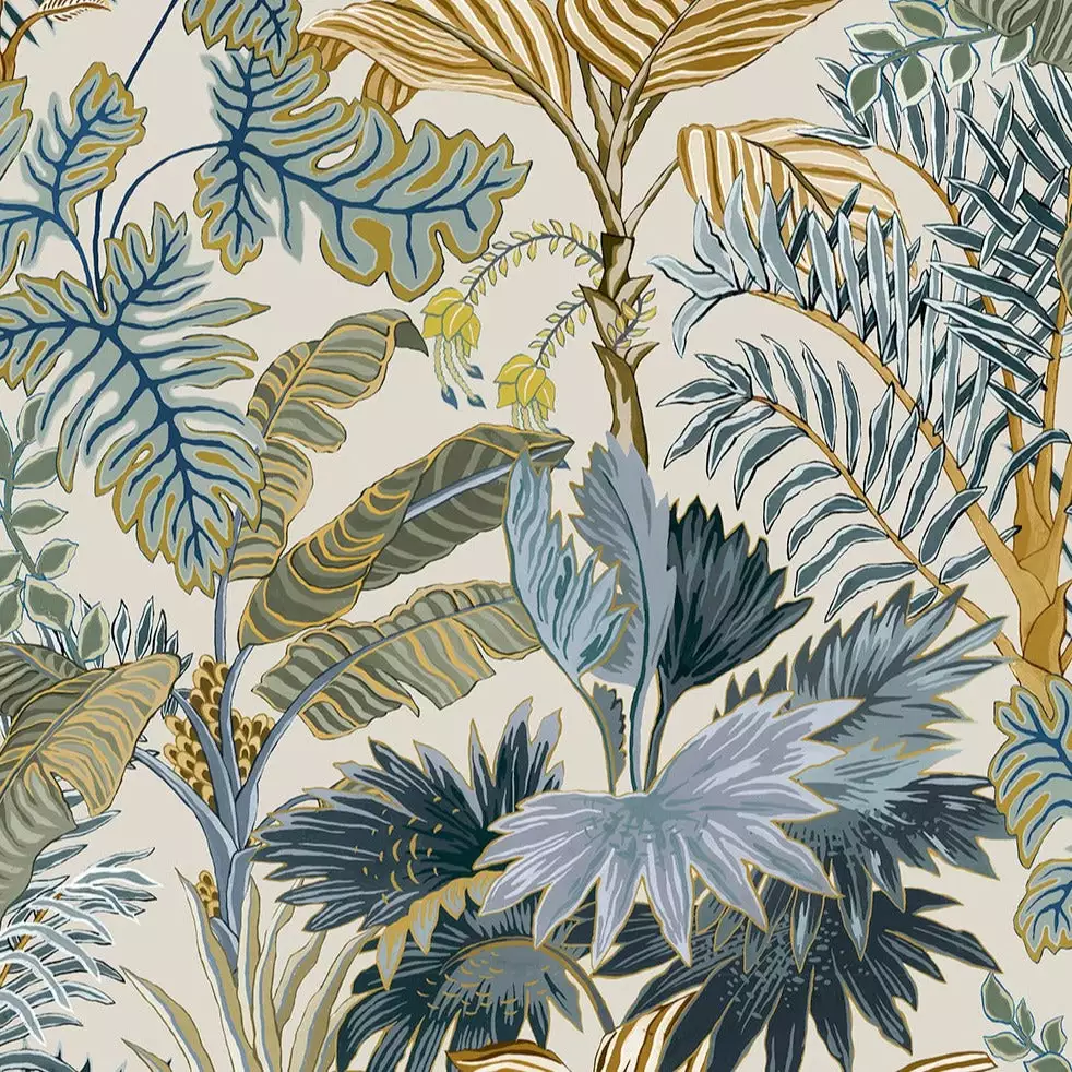 A luscious density of palm trees creating a playful and naive design. This design was hand painted with watercolour paints.