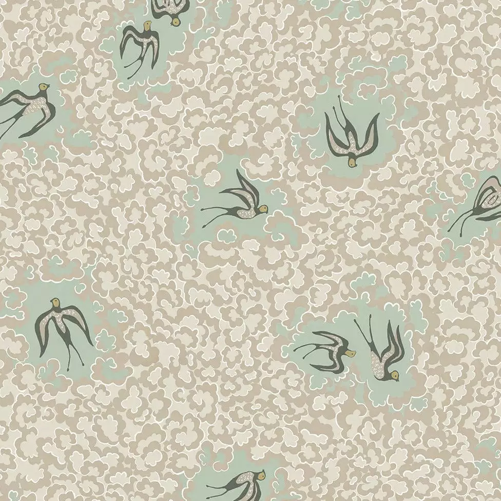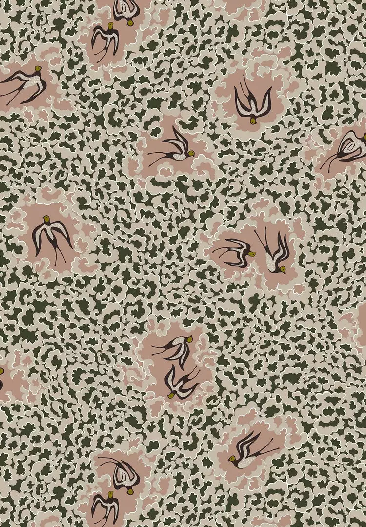 Bea’s Swallows Wallpaper Chaingate Green & Ham PinkÂ