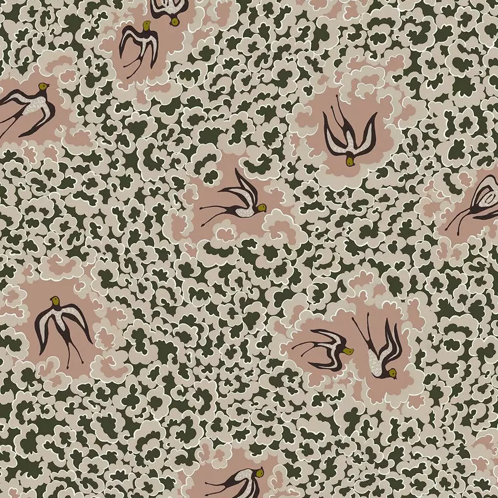 Bea’s Swallows Wallpaper Cliffwell Stone & Radmoor Blue