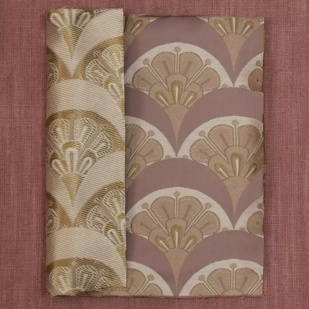 Deco Scallop is inspired by Liberty’s archive catalogues of the late 1890s to 1910s, when beautiful Japanese Art Deco fans and wallpapers were imported alongside fabrics, jewellery, porcelain, screens, and rugs. The motif was developed by the Liberty design studio as a simple contemporary woven jacquard design – a modern take on the Liberty peacock feather and Art Deco fan.