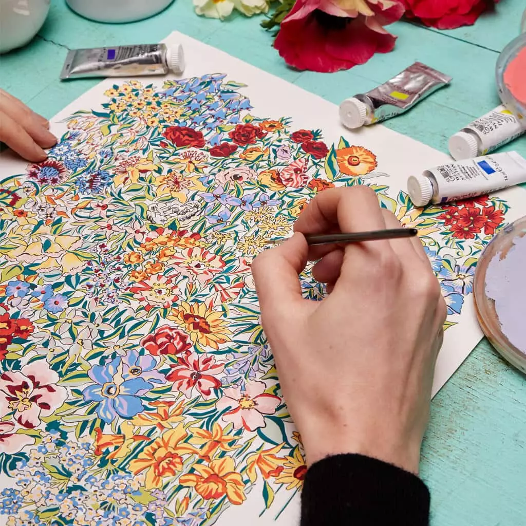 Hand-painted in the Liberty design studio, Botanical Stripe is a signature artwork of the Floribunda collection, celebrating the historic tradition of botanical illustration in Britain. Botanical Stripe is printed using a fine mesh gravure technique, bringing to life the soft painterly nature of the motifs. Matte and metallic pigments are layered in varied degrees of tonality to create a subtle luminescence, reminiscent of Victorian cyanotypes.