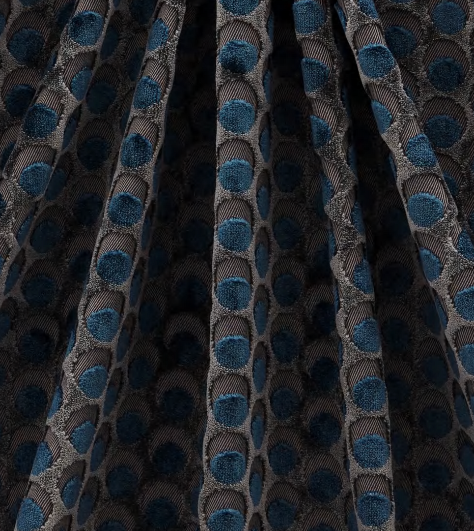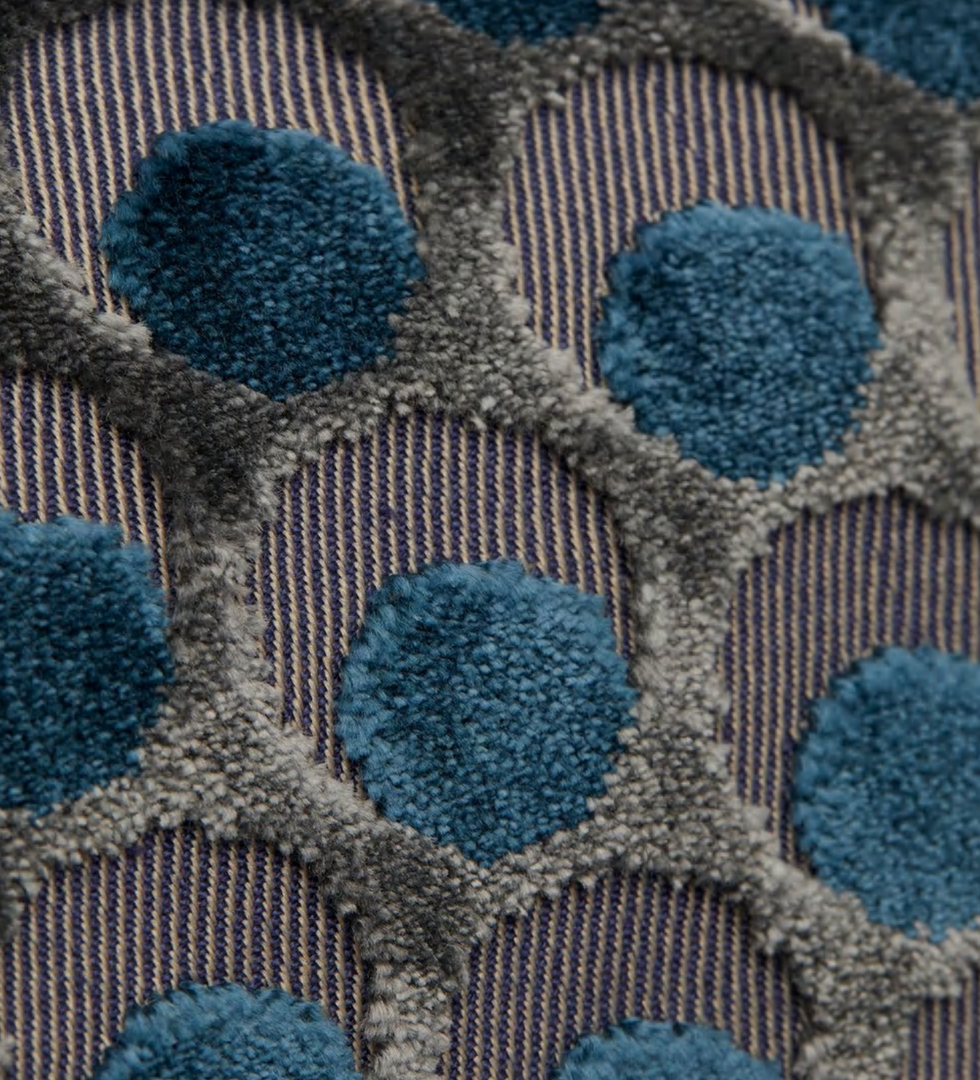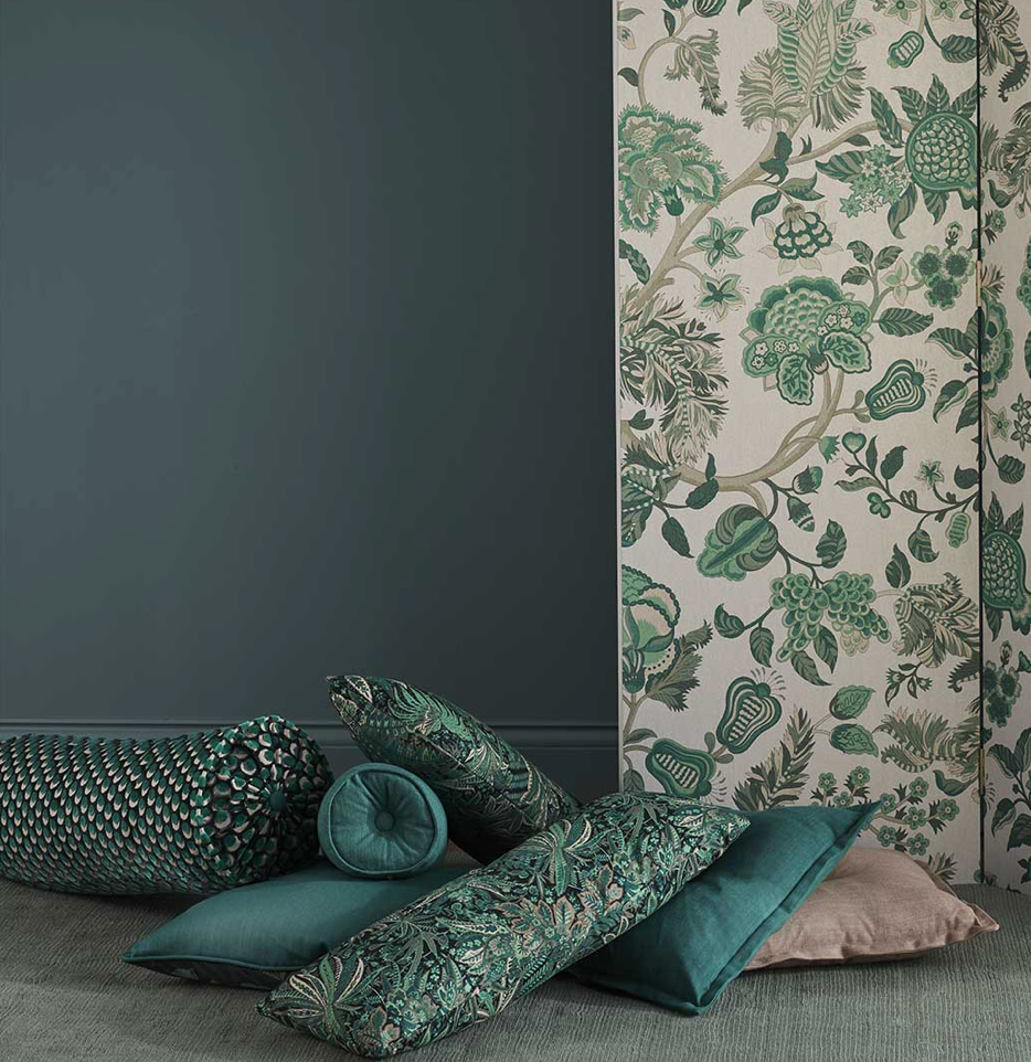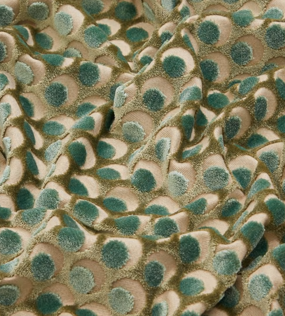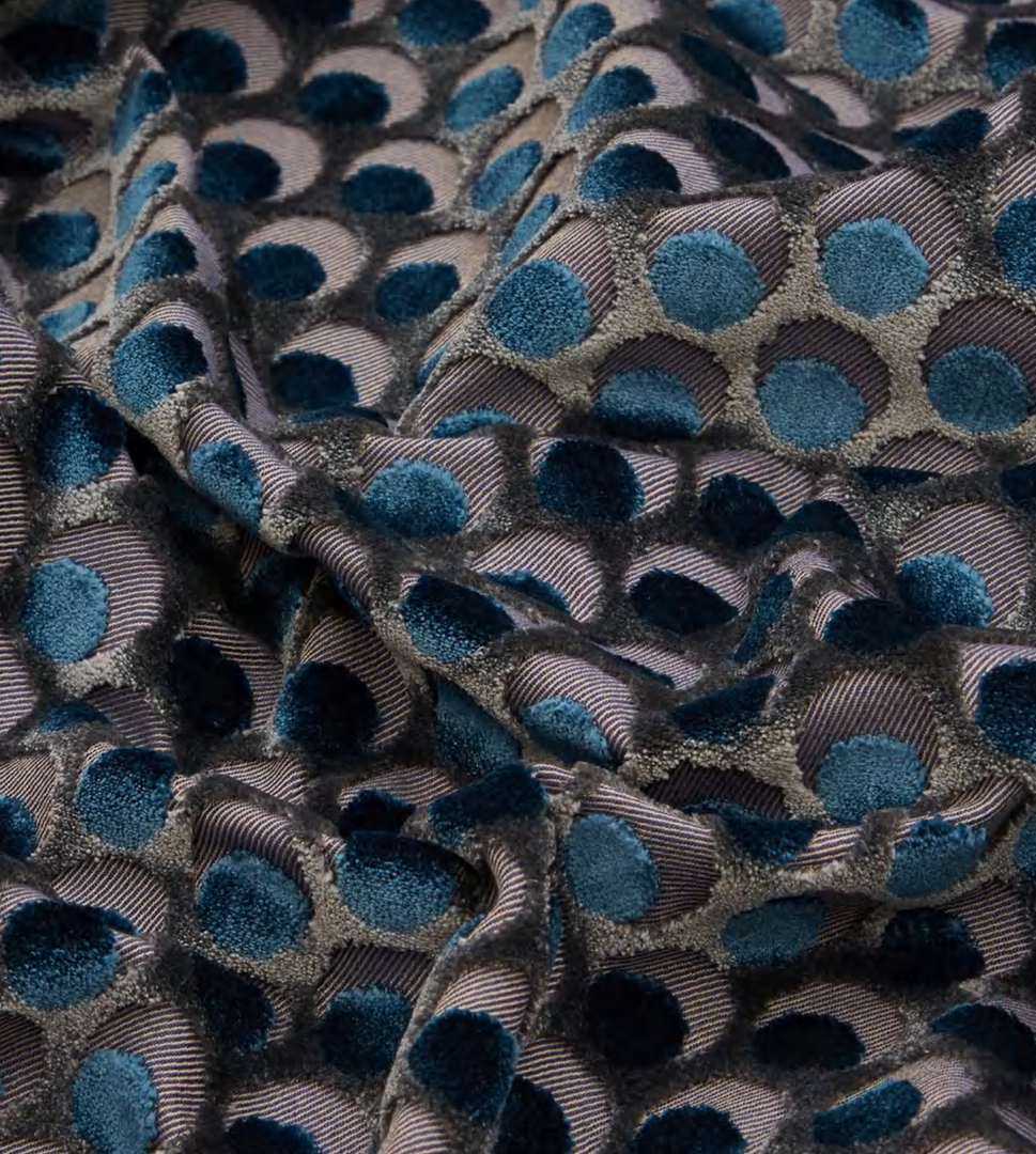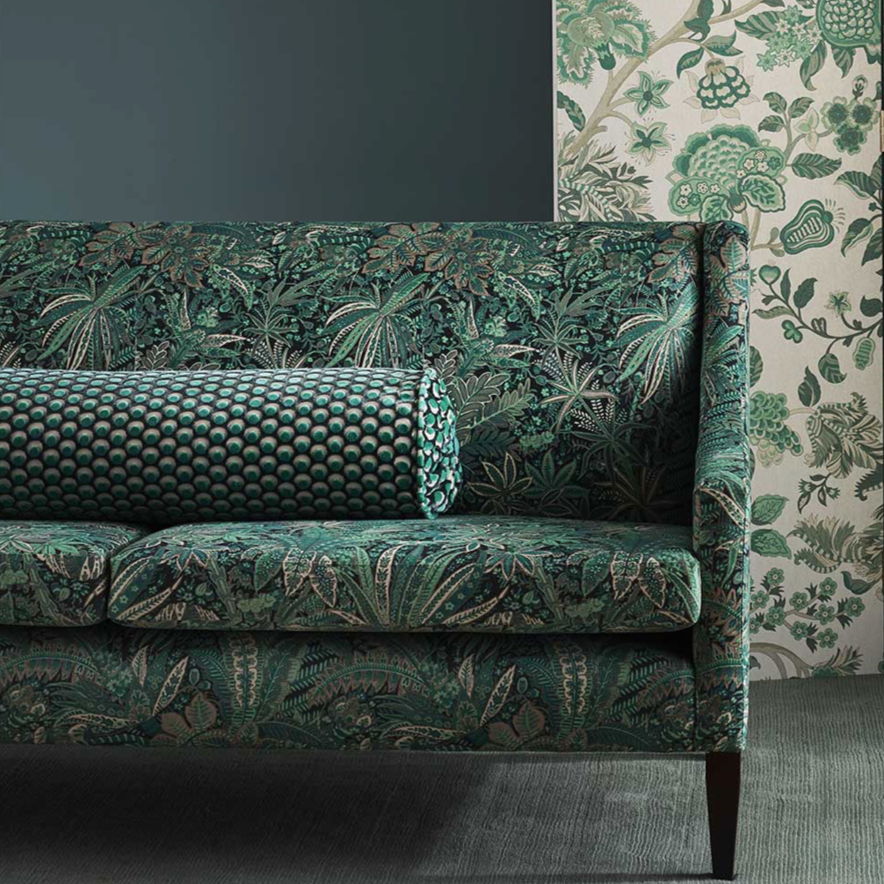 The design appears on a beautiful mixed-fibre cut-pile velvet – luxurious in feel and vibrant in colour, this tactile cotton fabric contains some polyester for added durability and softness. Suitable for heavy domestic and severe contract use, Cut Velvet is perfect for creating thick drapery, luxurious upholstery or even elegant throw or bolster cushions.