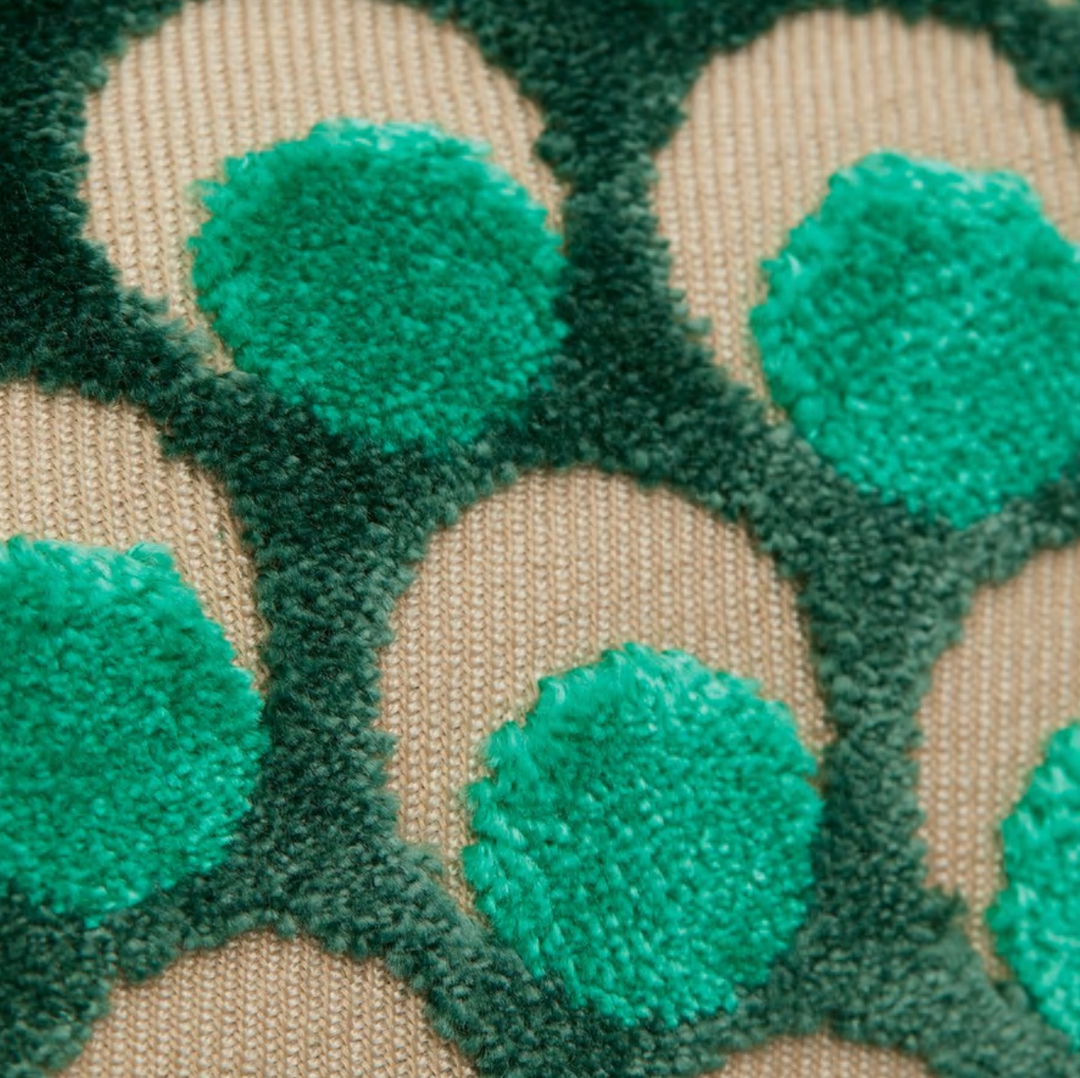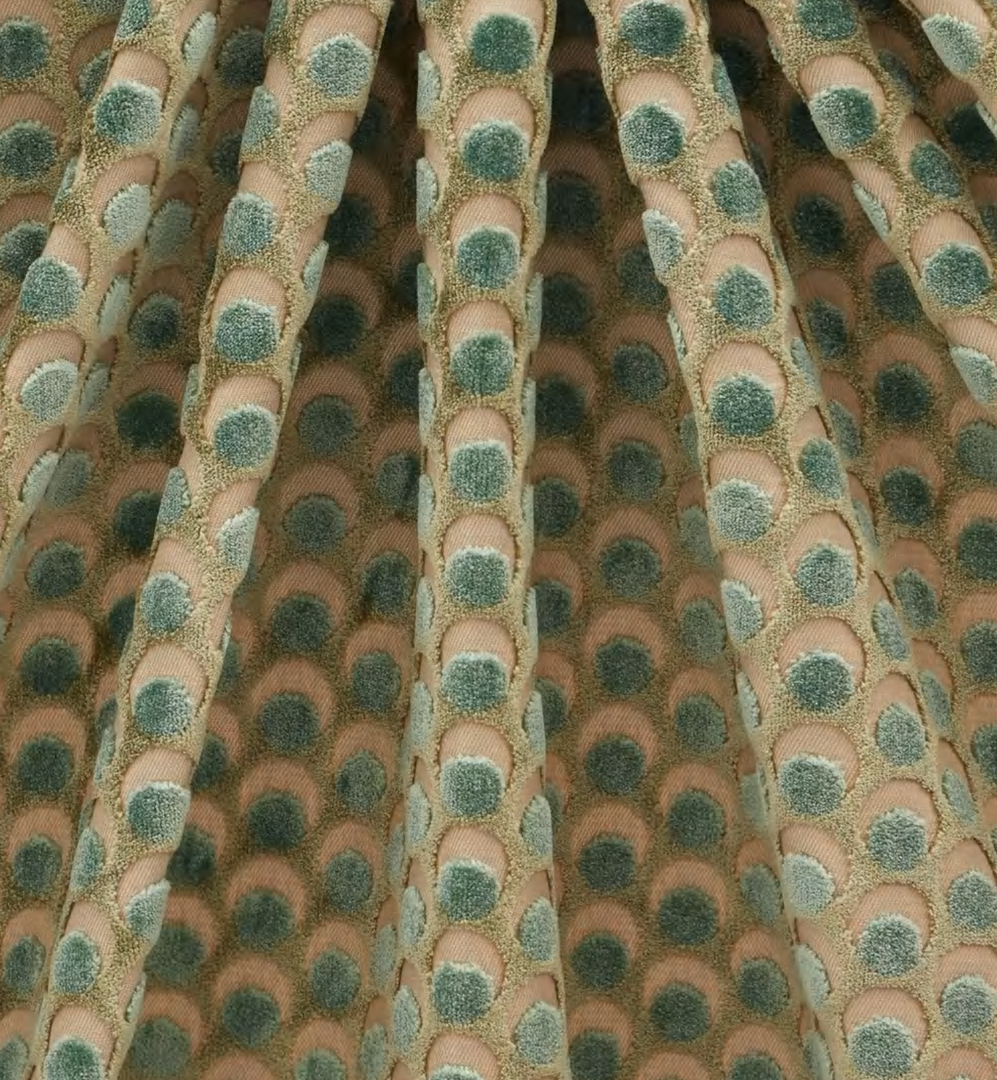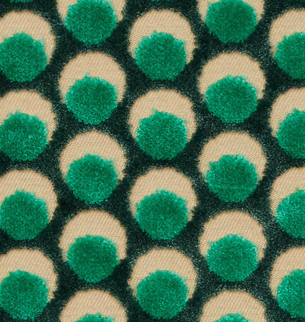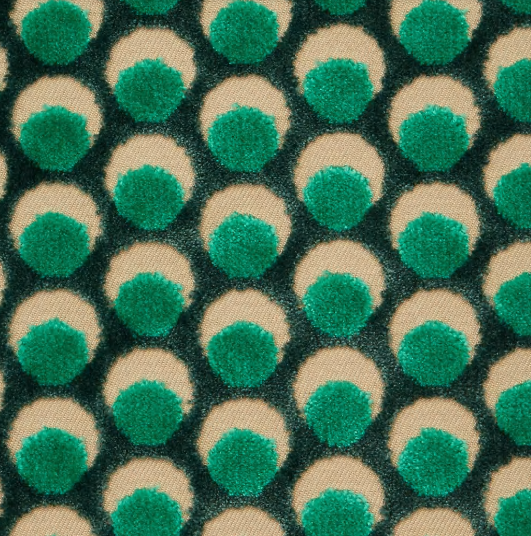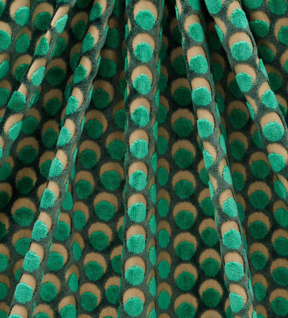 The design appears on a beautiful mixed-fibre cut-pile velvet – luxurious in feel and vibrant in colour, this tactile cotton fabric contains some polyester for added durability and softness. Suitable for heavy domestic and severe contract use, Cut Velvet is perfect for creating thick drapery, luxurious upholstery or even elegant throw or bolster cushions.