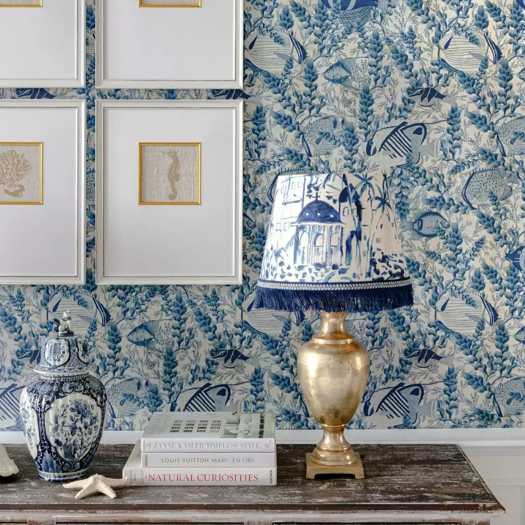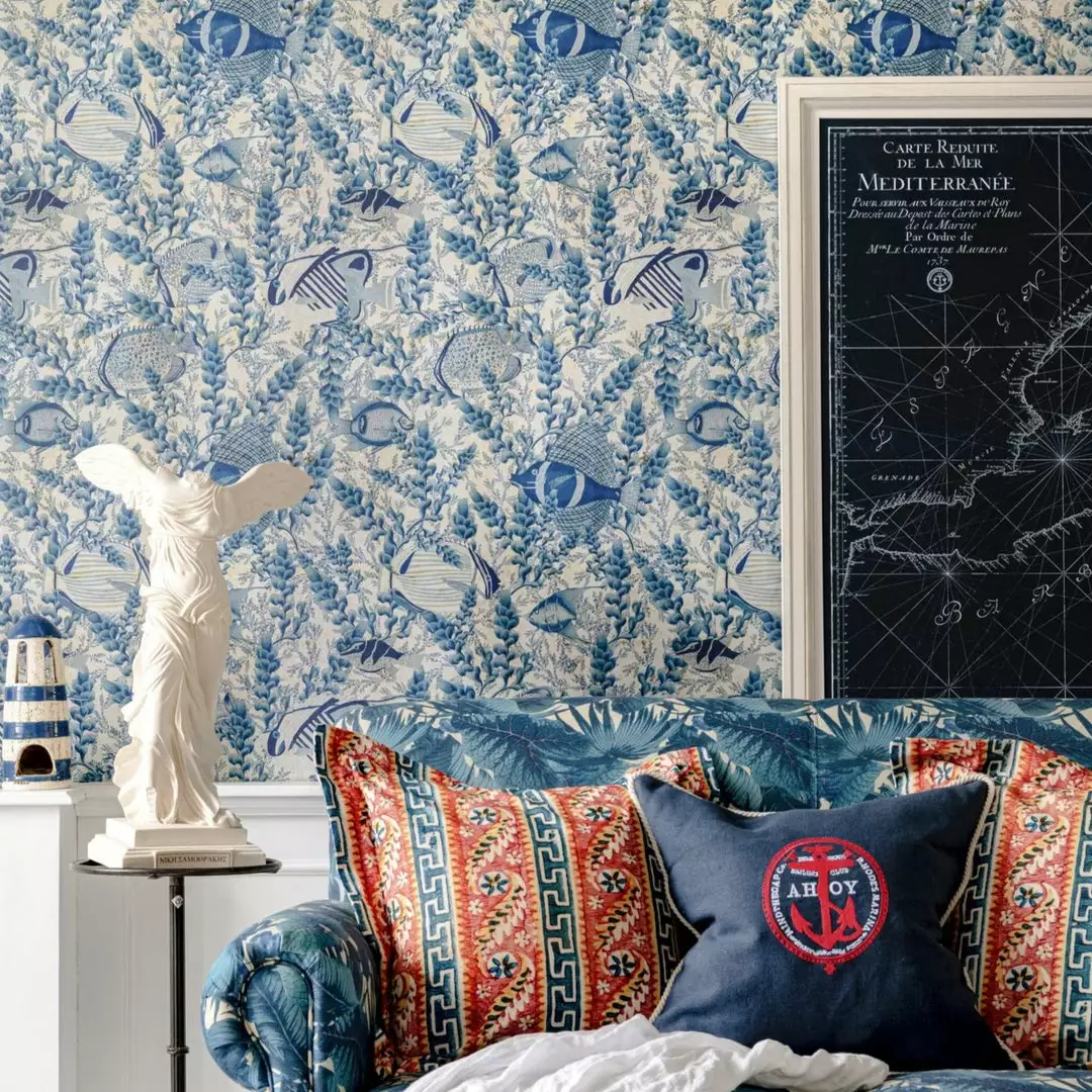 Find yourself under the sea and swimming amongst vibrant coloured fish with the Aquarium wallpaper from Mind The Gap. Featuring beautifully illustrated fish, this design will be sure to add some charm to any space. Available in two versions: polychromatic or monochrome in blue. Easy to put up with the paste the wall application and will add a bit of quirk to any room whether it is one wall or all. This wallpaper is digitally printed using eco-friendly inks.Â