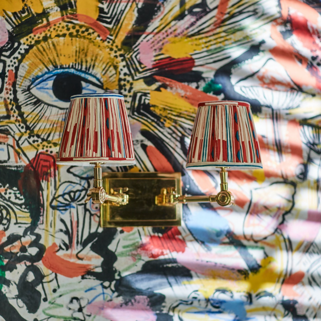 Fascinating lines and geometrical shapes, painted in earth tones, give the BHAUMIKITA pleated lampshade the authentic retro look of the ‘70s. Invite the Woodstock festival’s true feel into your home as the soft colours of this lovely pattern dance under the lights. Made from block printed cotton, the premium shade comes with a white lining, made from pure plain linen fabric.Â