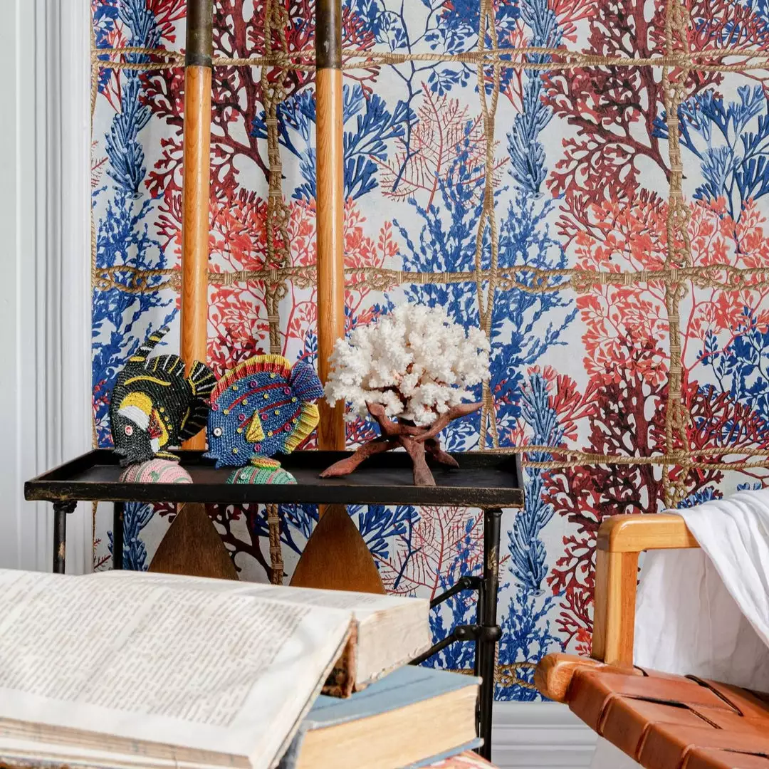 Surround yourself with the vibrant and rich Corallia wallpaper from Mind The Gap. Featuring beautiful, vivid anemones and coral found in remote places in Greece behind some yachting ropes, this design will bring an impactful feature to any home. The pattern is available in a light or dark background shade. Easy to put up with the paste the wall application and will add a bit of quirk to any room whether it is one wall or all. This wallpaper is digitally printed using eco-friendly inks.Â