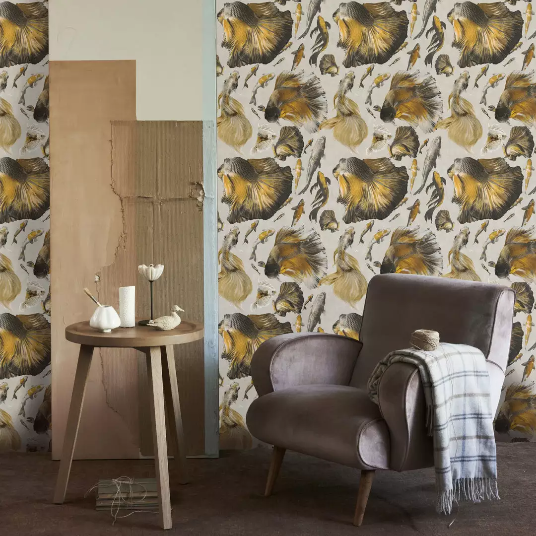 Swim with a shoal of fish and immerse yourself under the sea with the vibrant and the beautifully illustrated Goldfish wallpaper from Mind The Gap. An impactful feature for any home. Easy to put up with the paste the wall application and will enhance any room whether it is one wall or all. This wallpaper is digitally printed using eco-friendly inks.Â