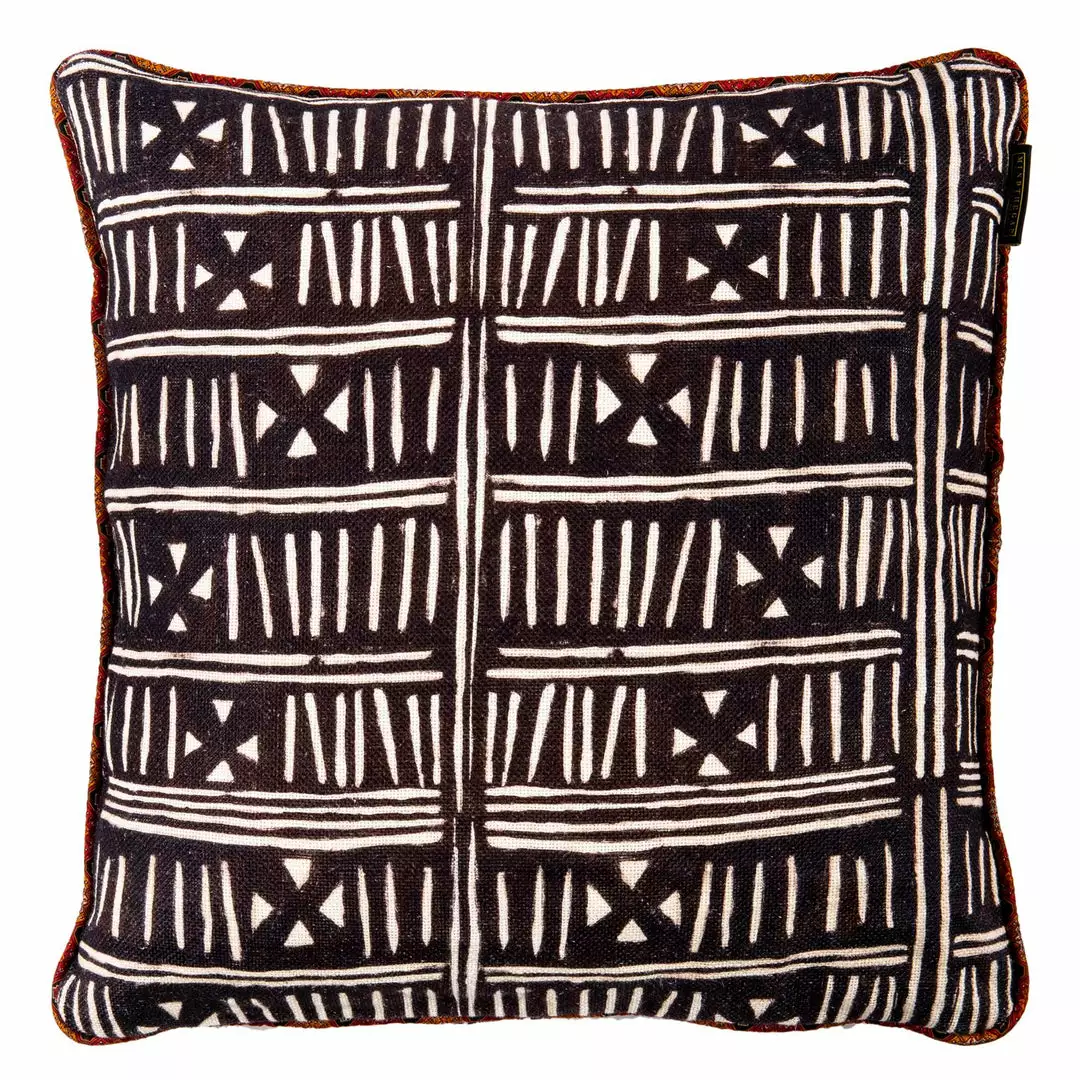 The Malian have inspired this design based on the ancient practice of traditional dyes using fermented mud. Often these patterns were based on animal tracks or bird footprints. Graphic and strong the perfect accent pattern. Stonewashed heavy linen finished with assorted piping and 100% duck feather filling. Â Â