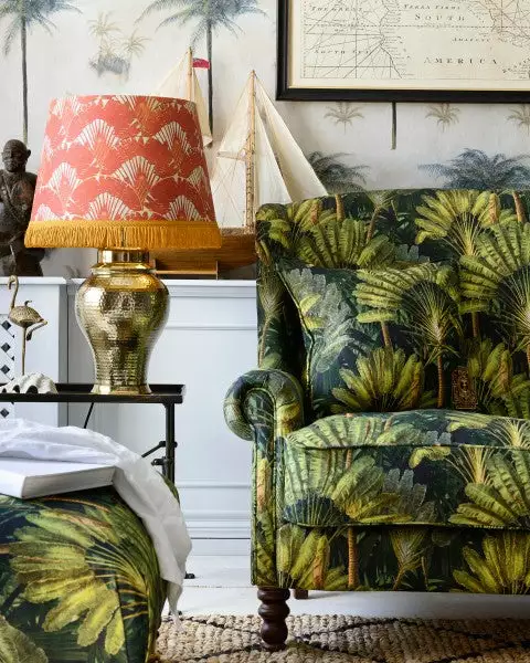 Premium drum and cone fabric lampshades decorated with digitally printed, eco-friendly inks. Shades are reinforced with hidden metallic frames and lined with luxurious metallic lining. To be used only with lamp bases.Â