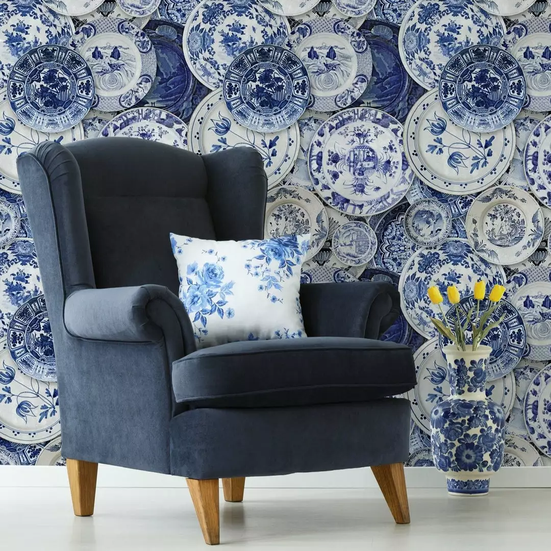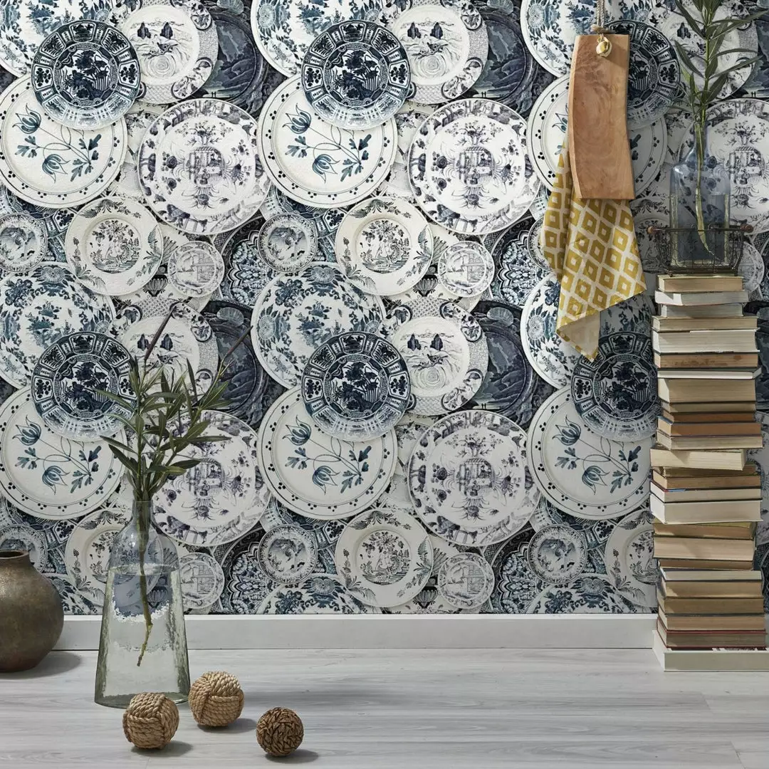 Inspired by the Delftware Vintage pottery created in the 16th Century, this wallpaper brings depth and vibrancy to any room. The perfect wallpaper to make a statement in any room. Easy to put up with the paste the wall application and will enhance any room whether it is one wall or all. Also available in a vibrant blue.Â