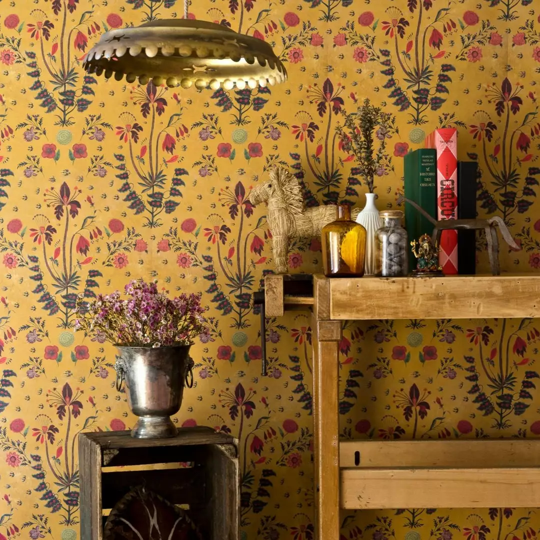 Decorate your walls with the Gypsy wallpaper from Mind The Gap. Surround yourself with rich and intricate florals on a dramatic dark background. This wallpaper will create the perfect statement for any home. Easy to put up with the paste the wall application and will enhance any room whether it is one wall or all. This wallpaper is digitally printed using eco-friendly inks. Available in both anthracite and ochre. This design is also available in the popular linen fabric in the colour ochre.Â