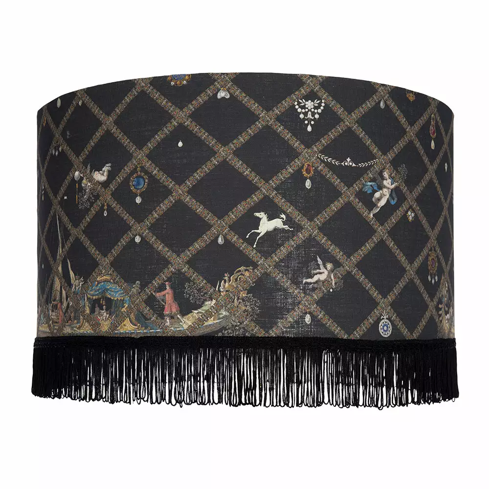 Renaissance inspired, figurative elements and jewellery adornments dance about this shade creating interest from all angles. A black base with brown diamond pattern, Cherubs and jewels provide accent colours. Both classic and playful. Â Â