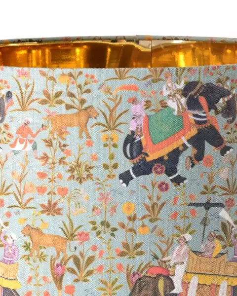 Premium drum and cone fabric lampshades decorated with digitally printed, eco-friendly inks. Shades are reinforced with hidden metallic frames and lined with luxurious metallic lining. To be used only with lamp bases.Â