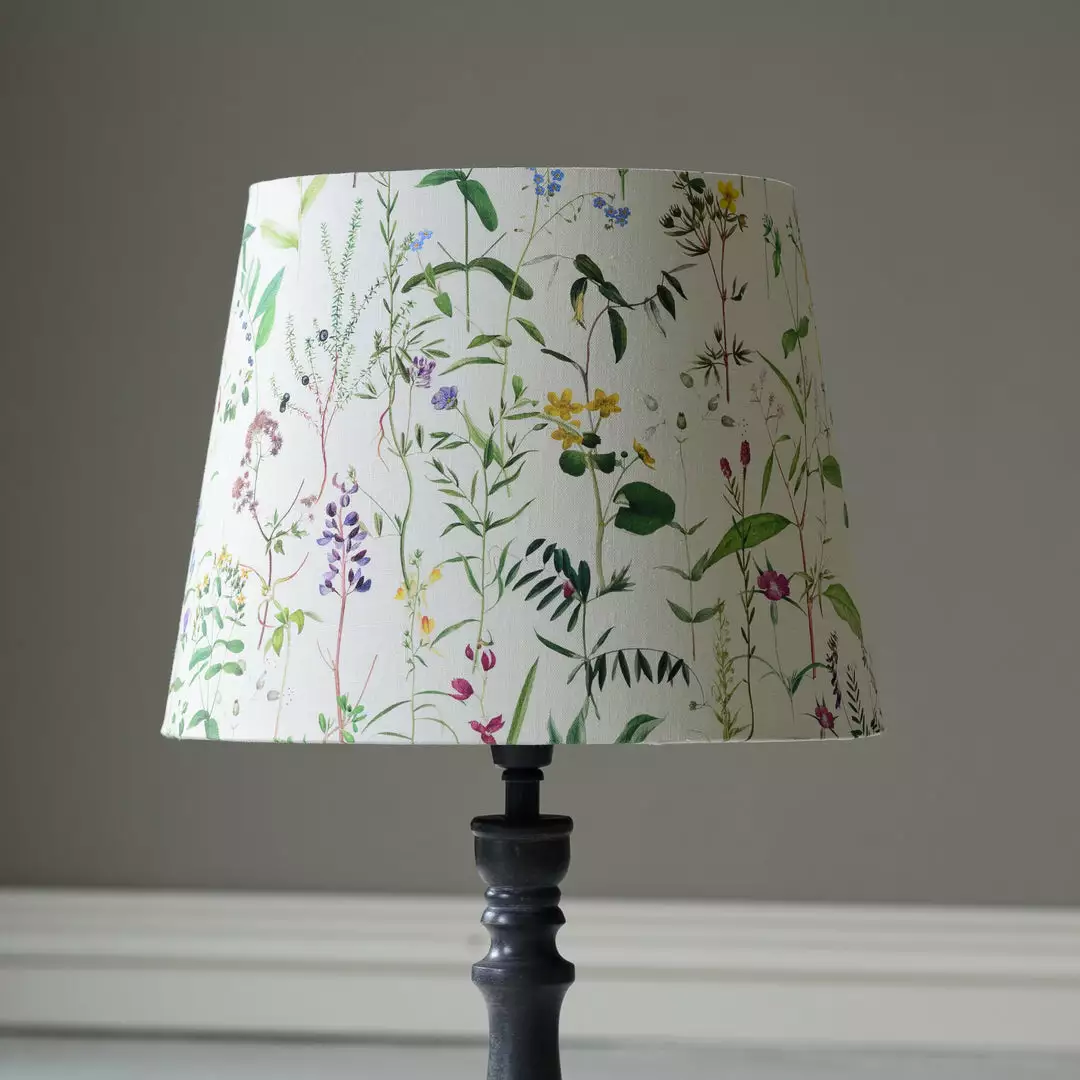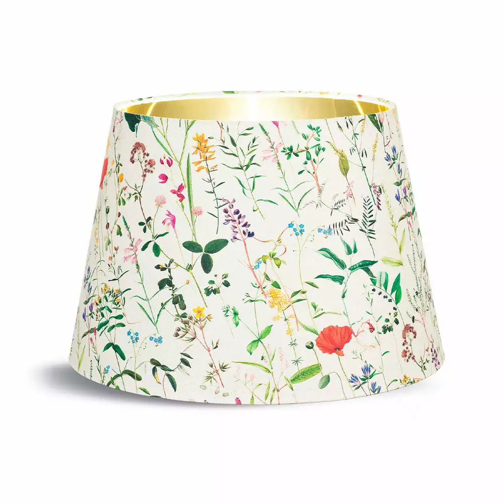Premium drum and cone fabric lampshades decorated with digitally printed, eco-friendly inks. Shades are reinforced with hidden metallic frames and lined with luxurious metallic lining. To be used only with lamp bases.Â