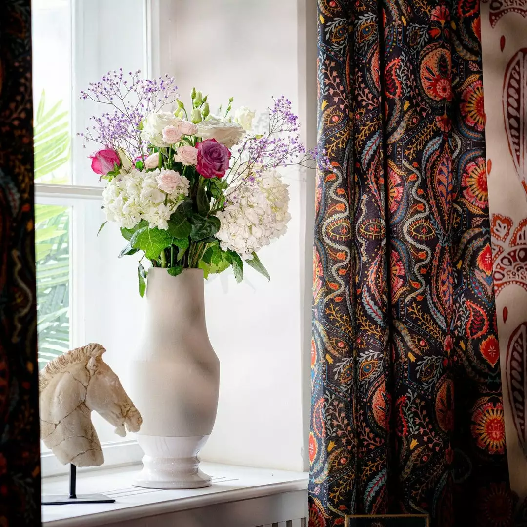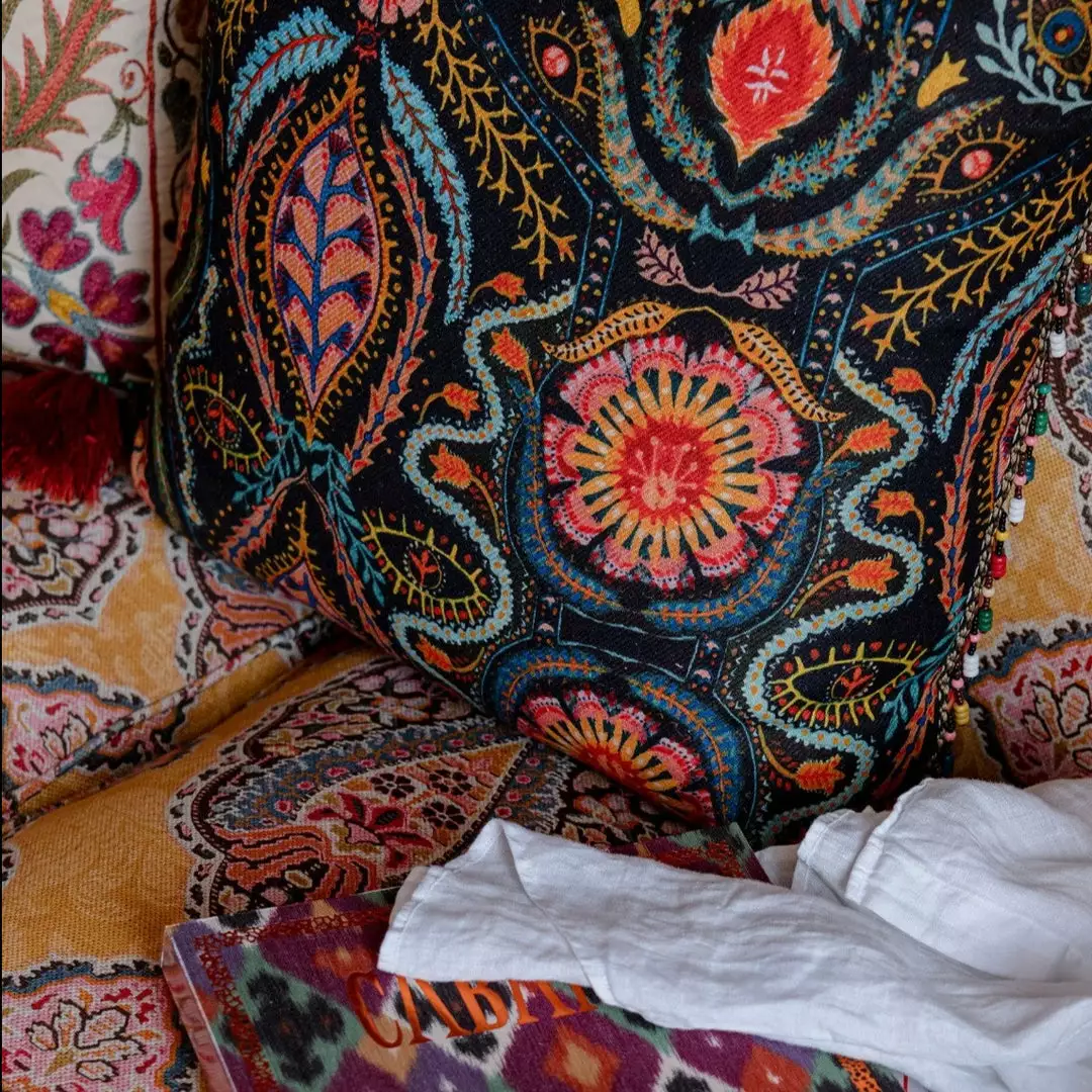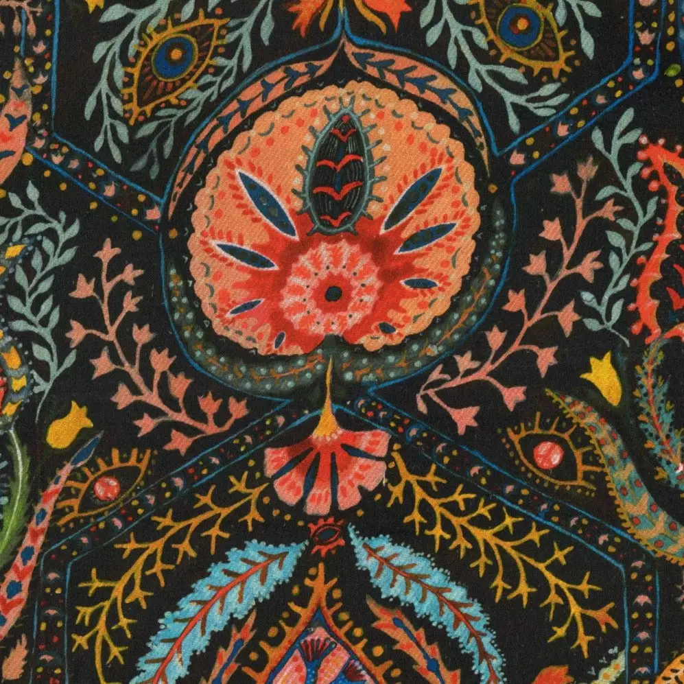 Alluding to the popular paisley prints and psychedelic colours of the era, SOUL SACRIFICE brings a graceful touch to the room with its dark background allowing the colours to pop. Drawing the eye into fine details and enchanting shapes and forms, your sight gets lost into the magic of this captivating print.