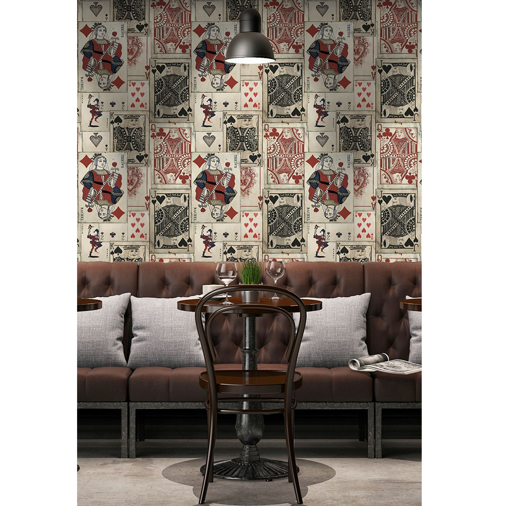 Take yourself back in time with this retro wallpaper, displaying a fun arrangement of playing cards. It is easy to put up with the paste the wall application and will enhance any room whether it is one wall or all.