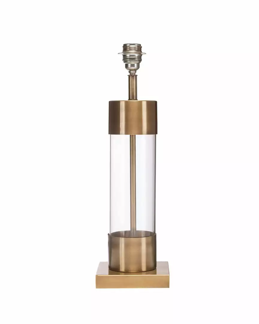 A understated and classy, ultramodern lamp base, SIBELLA casts beauty in simplicity. This authentic table lamp made of brass and acrylic glass has an antique finish and comes with E27 metallic lamp holder and black braided cable.