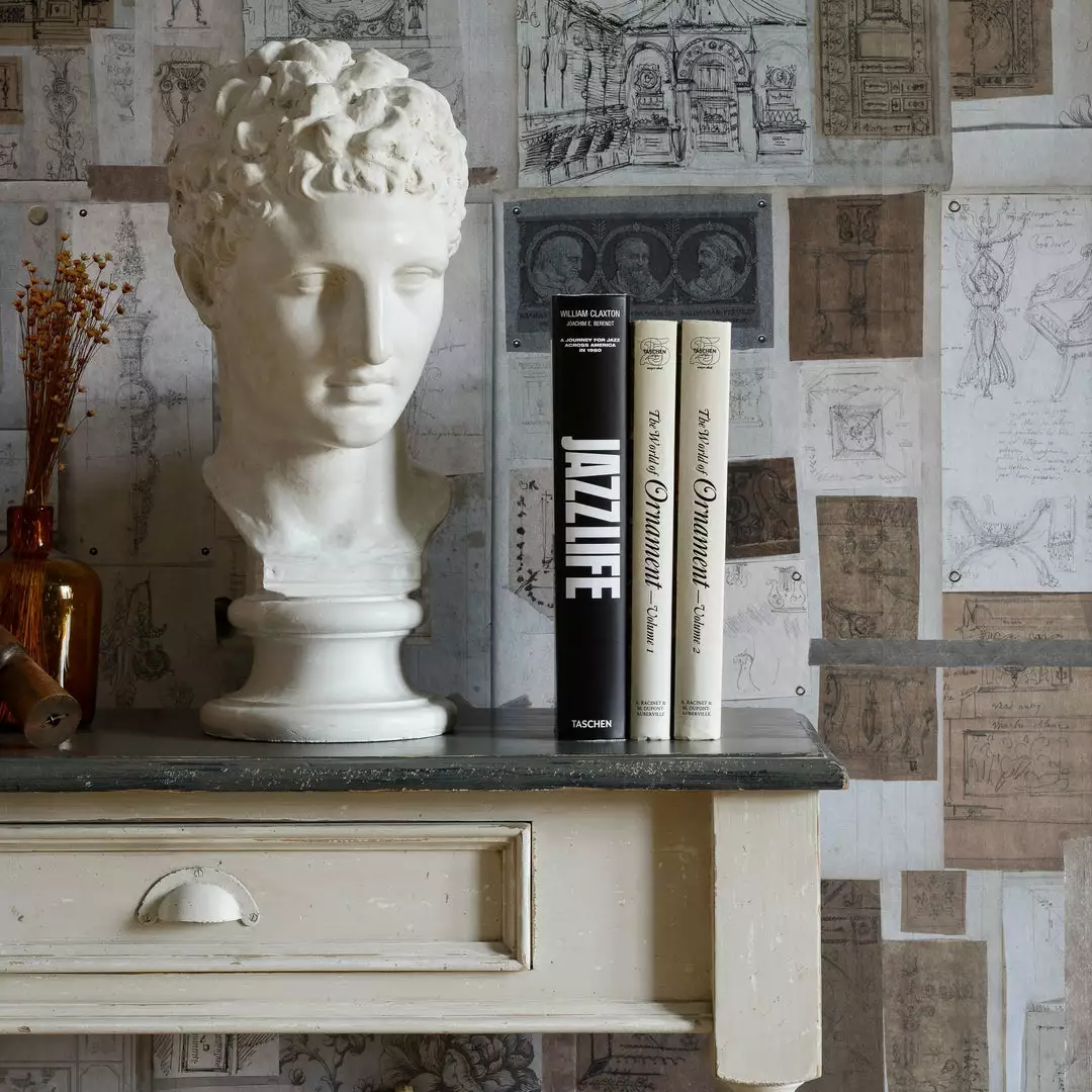 Surround yourself with inspiring drawings and illustrations from the sketch book of French artist Charles Percier. The perfect wallpaper to create a statement for any room. Easy to put up with the paste the wall application and will enhance any room whether it is one wall or all. This wallpaper is digitally printed using eco-friendly inks. Printed across three rolls to maximise the pattern repeat.Â