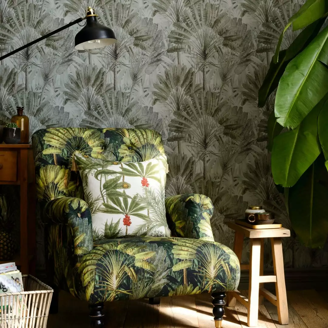 Surround yourself with the Traveller’s Palm wallpaper from Mind The Gap. Inspired by the ‘Traveller’s Palm’ which grows specifically in some regions of Madagascar, this wallpaper would be the perfect soft and sophisticated statement for any space. Easy to put up with the paste the wall application and will add a bit of quirk to any room whether it is one wall or all. This wallpaper is digitally printed using eco-friendly inks. Available in both neutral and sunset. The Sunset colourway is also available in an linen.Â