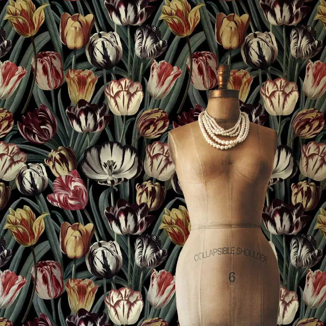 Surround yourself with Tulipa Dark wallpaper from Mind The Gap and watch vivid, vibrant tulips grow all around you. Easy to put up with the paste the wall application and will enhance any room whether it is one wall or all. Also available in a vibrant colour choice.Â