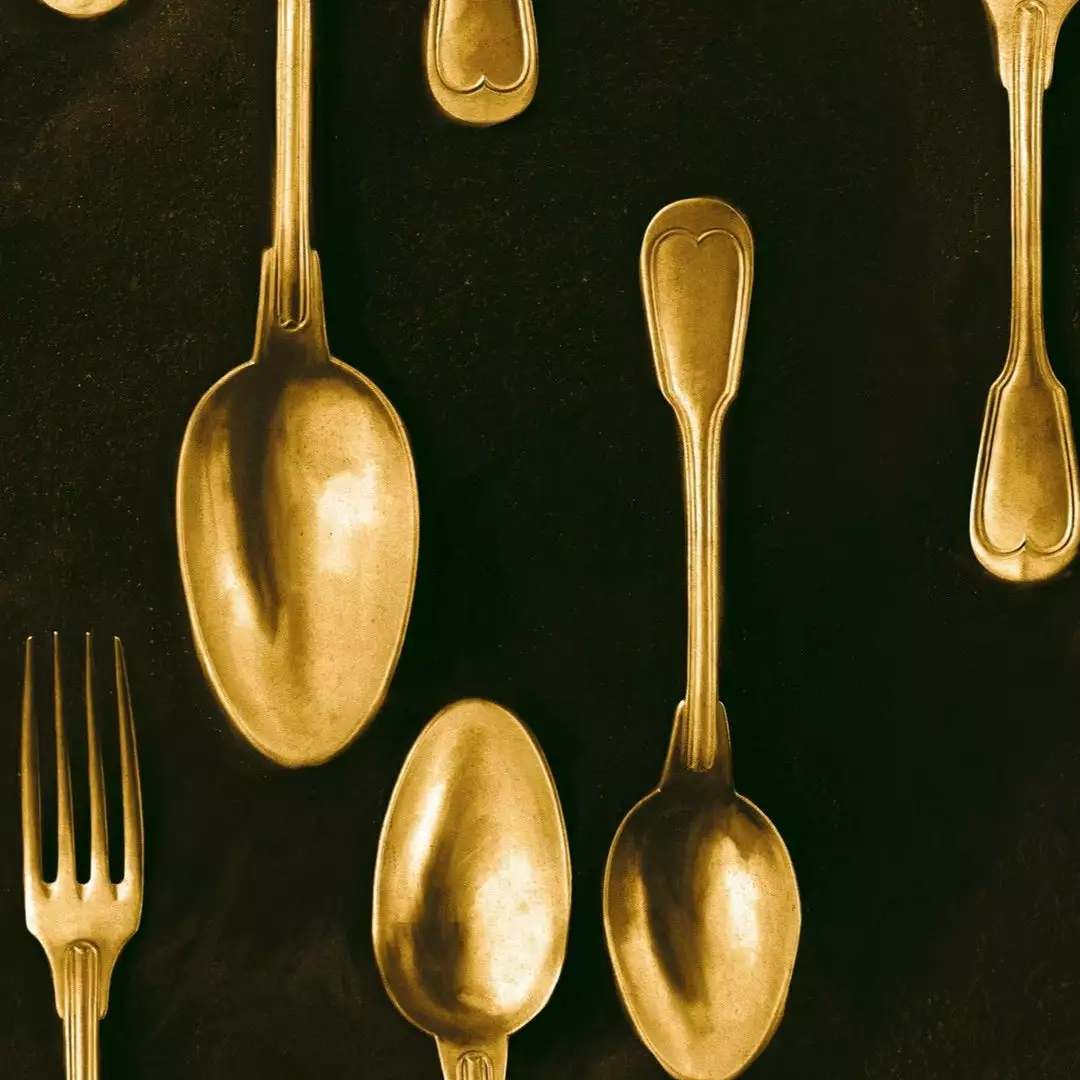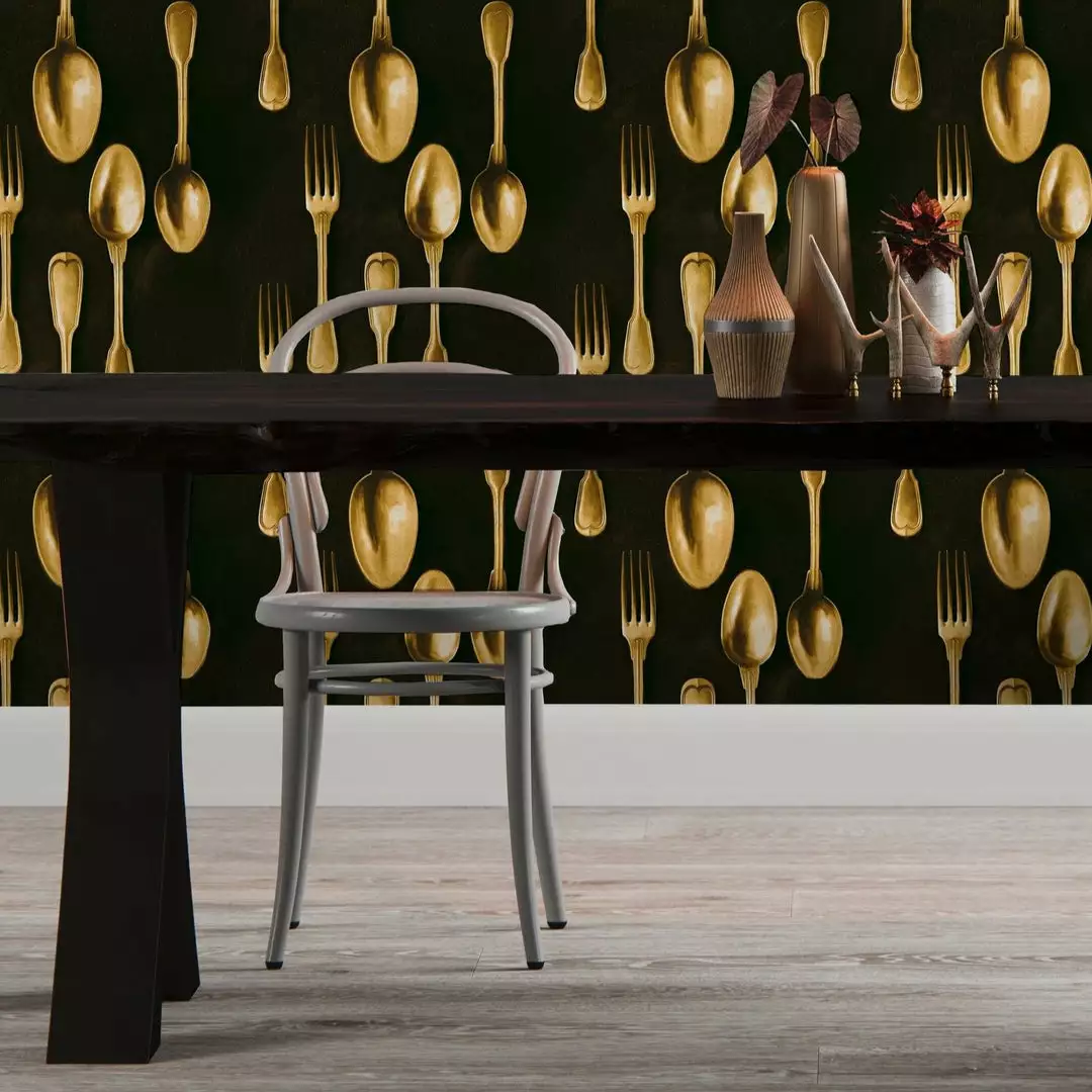 Decorate your walls with the Cutlery wallpaper from Mind The Gap. Featuring large-scale elegant cutlery floating upon a dark backdrop. The perfect statement for any wall in your kitchen or dining room. Easy to put up with the paste the wall application and will enhance any room whether it is one wall or all. This wallpaper is digitally printed using eco-friendly inks. Available in brass, copper or silver.
