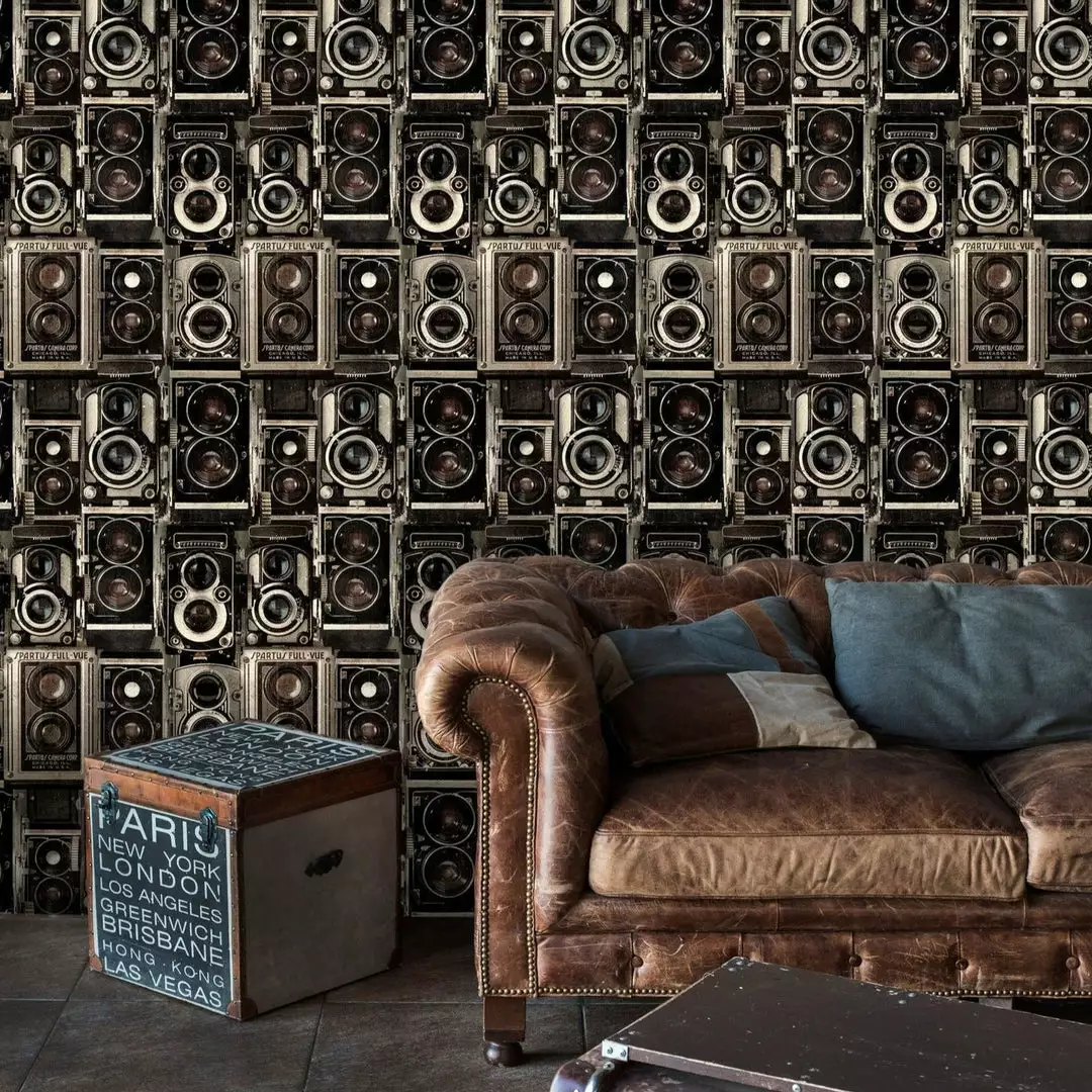 Cover your walls with retro cameras with the Obscure wallpaper from Mind The Gap, inspired by an Antiquarian’s work. Perfect to make a statement in any room. Easy to put up with the paste the wall application and will enhance any room whether it is one wall or all. Also available in a lighter colour palette.Â