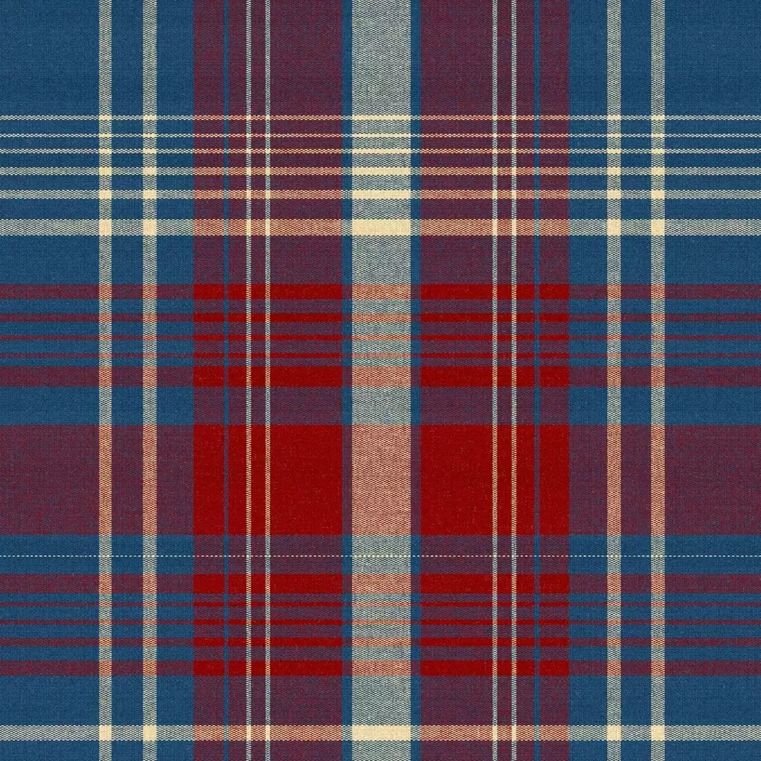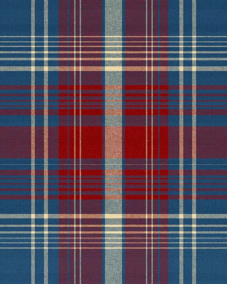 Channel the charming characteristics of traditionally woven cloth with our take on iconic tartan plaid. A simple yet personality-filled design composed of tonal stripes built up in layers, MONTEREY exhibits the depths of colour historically achieved when multiple threads are combined on a loom. The supersized nature of the checks simplifies and modernises the age-old pattern while flecks of white create the feel of a light fabric, the Sapphire palette artfully merging rich red and royal blue.