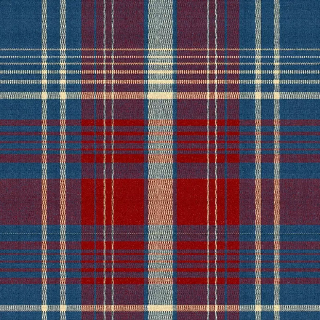 Channel the charming characteristics of traditionally woven cloth with our take on iconic tartan plaid. A simple yet personality-filled design composed of tonal stripes built up in layers, MONTEREY exhibits the depths of colour historically achieved when multiple threads are combined on a loom. The supersized nature of the checks simplifies and modernises the age-old pattern while flecks of white create the feel of a light fabric, the Sapphire palette artfully merging rich red and royal blue.