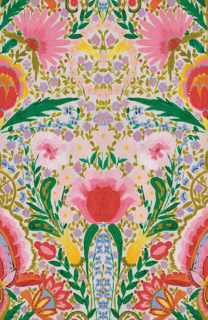 Listen to the lyrics of the Creedence Clearwater Revival classic as you find yourself amongst a mesmerising field of flowers, filling the air and vista with an assortment of vibrant scents and colours. Centred around a display of pink florals and a circular chain of blooms, the SUZIE Q print is filled with different varieties coming together to fill the walls with a colourful explosion, giving life to the room itself. Imagine the floral notes as you walk barefoot through this meadow, finding a new intricacy in between the layers of every petal each time you cast your eyes across this alluring print. Available with a light and dark background.