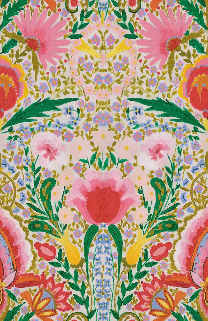 Listen to the lyrics of the Creedence Clearwater Revival classic as you find yourself amongst a mesmerising field of flowers, filling the air and vista with an assortment of vibrant scents and colours. Centred around a display of pink florals and a circular chain of blooms, the SUZIE Q print is filled with different varieties coming together to fill the walls with a colourful explosion, giving life to the room itself. Imagine the floral notes as you walk barefoot through this meadow, finding a new intricacy in between the layers of every petal each time you cast your eyes across this alluring print. Available with a light and dark background.