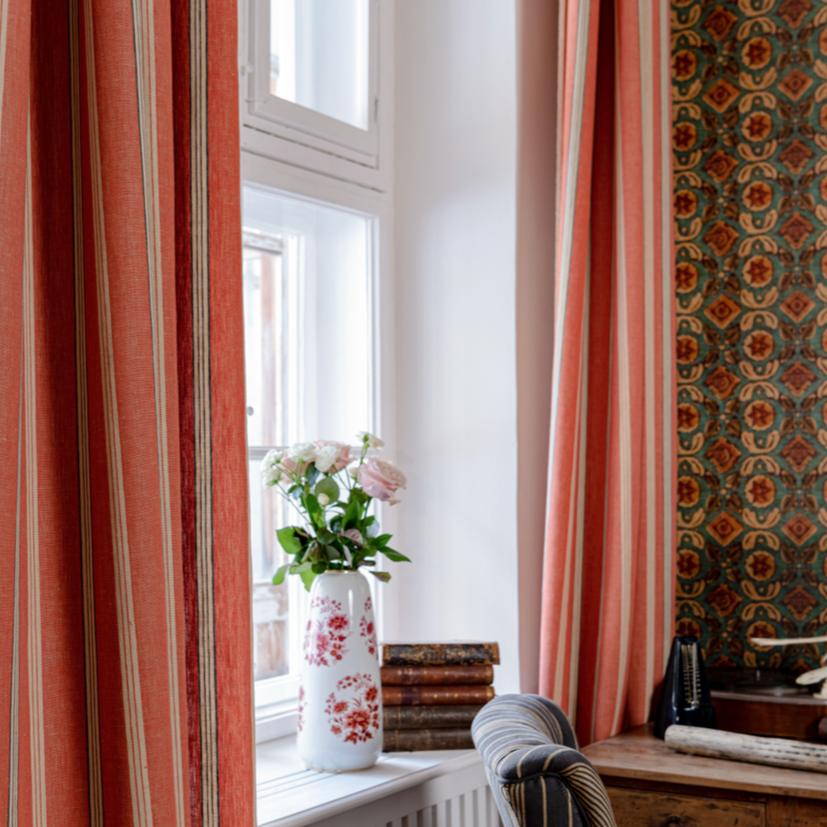 Referencing Vortex I, the rock festival held in Oregon in 1970, OREGON STRIPES has a colour palette which embodies the late summer and early autumn hues. The contrasting blue and auburn lines are complemented with a neutral stripe bringing a harmony to the shades as they add a rustic elegance to the interior.