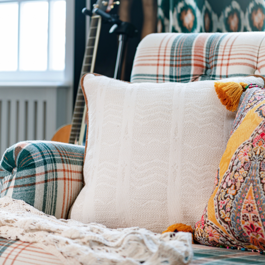Referencing the closest community to the Woodstock festival, WHITE LAKE got its name from the white sand of its beaches. The neutral jacquard weave includes forms which depict waves, ripples, and the movement of water, bringing a subtle texture to the surface which alludes to the lake itself.