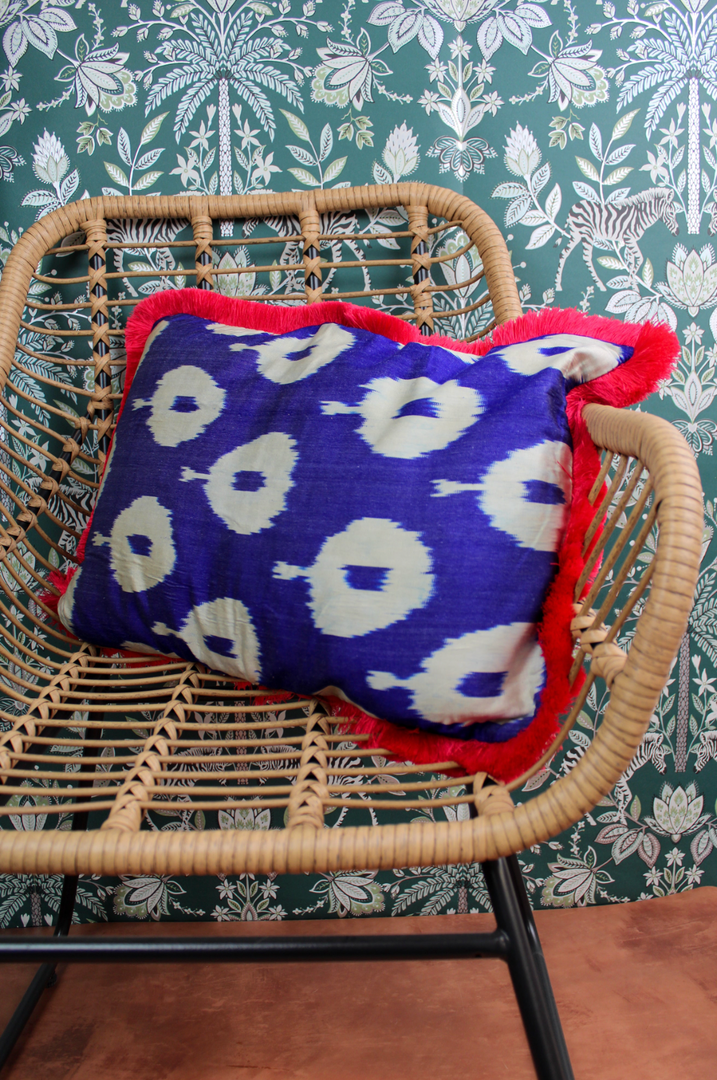 MY DORIS gorgeous handmade silk thread cushions. Made from Uzbekistan silk and handmade in made in Turkey. Artisan handmade and handwoven so slight variations in designs may occur. Weaving the mark of the maker into products with a soul. Cotton backside with an invisible zip and feather cushion pad included.Â