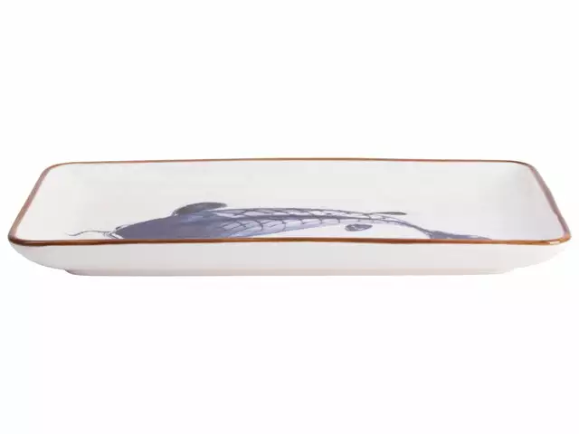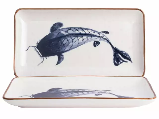 The prettiest serving dish with a decorative navy Koi print. Use for entertaining or keep for yourself to safeguard small items and treasures.