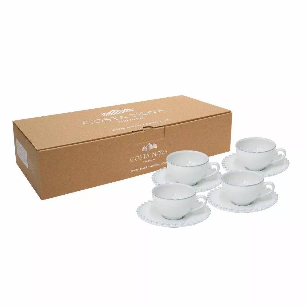 The classic pearl white dishes. Elegant coffee cups and accompanying saucers for four. Perfect for entertaining or making every day dining and time outs a bit special. Â