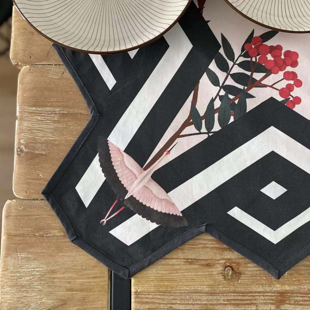 The design, framed within the Prado y Barrio chevron, centers around the Iberian Stork, surrounded by gorgeous cherry branches, and figs as a delicate background. It has been thought for intimate moments, candlelit dinners, important questions…Â Â