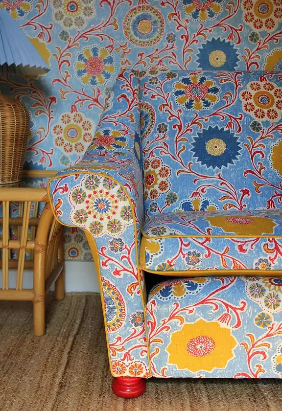Peacock & Pigeon is a curated collection of salvaged furniture and hand-made original pieces that are upholstered in bespoke hand printed fabric by Ellen Merchant and Carl Batchelor.