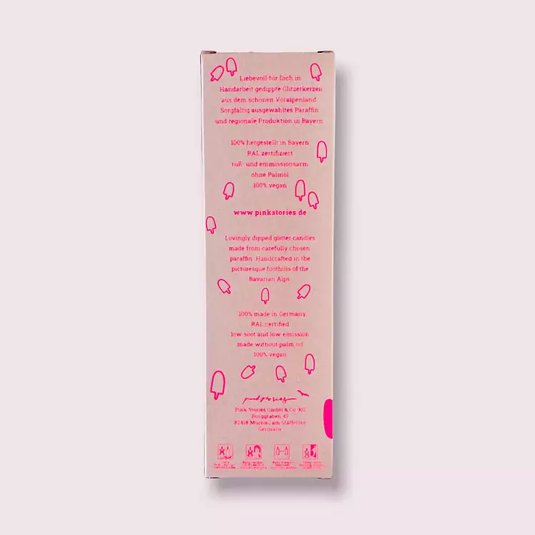 Produced in Bavaria, Pink Stories manufacture their candles using eco-friendly materials and using water based or soya bean oil inks.  Â
