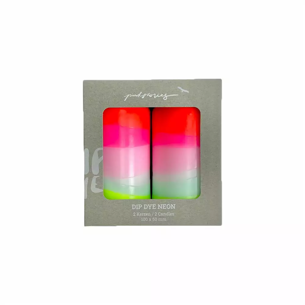Pink Stories Neon Pillar Candles – Pair Lollipop TwinsÂ